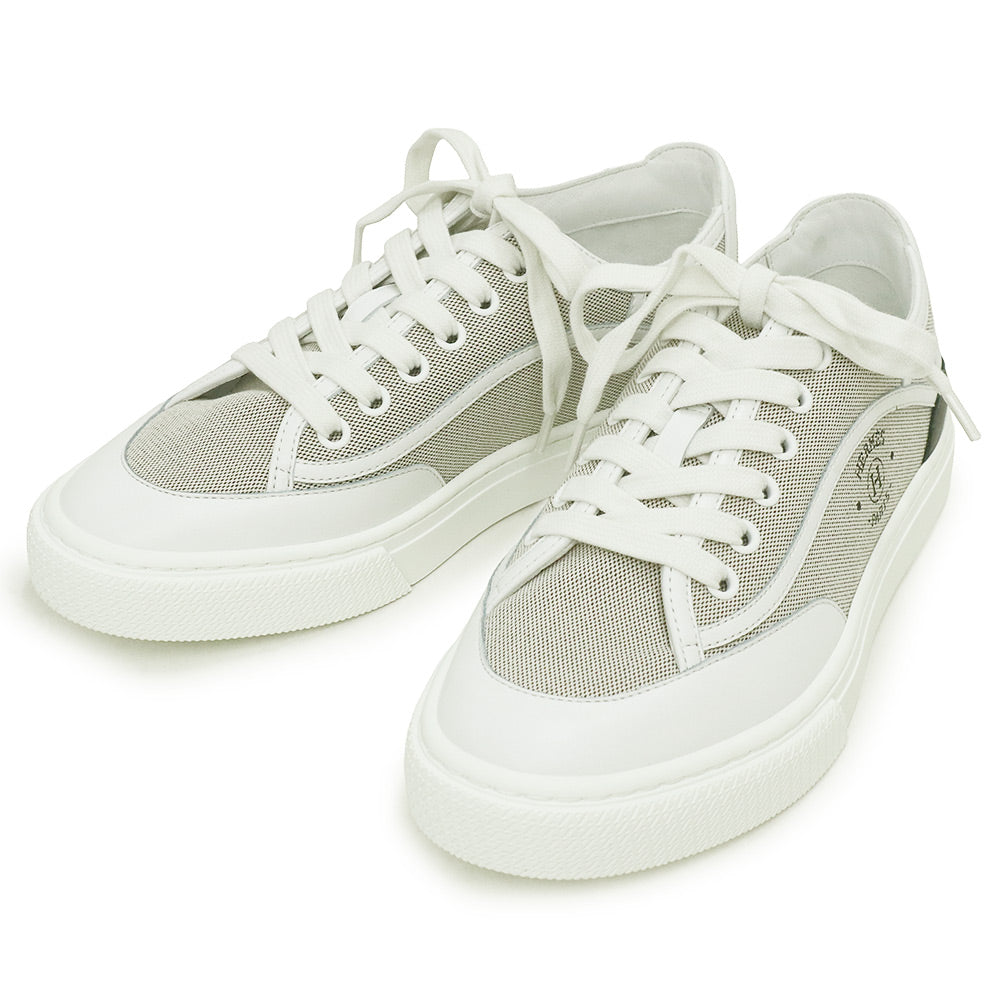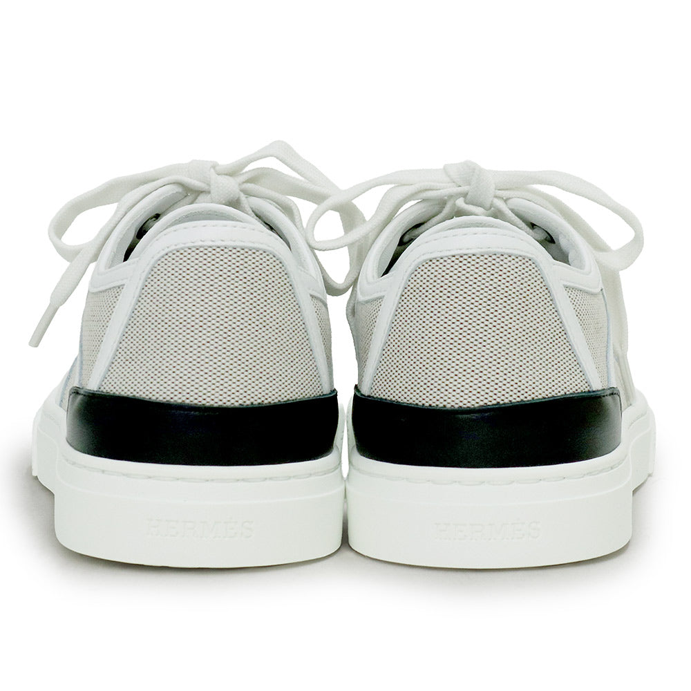 【新品・未使用品】エルメス HERMES ゲット スニーカー シューズ 靴 #36 23/23.5cm トワルアッシュ キャンバス カーフスキン レザー Prunoir プリュノワール Blanc ブラン ホワイト 箱付