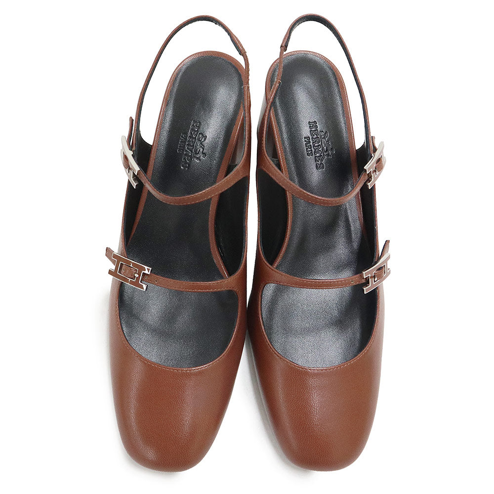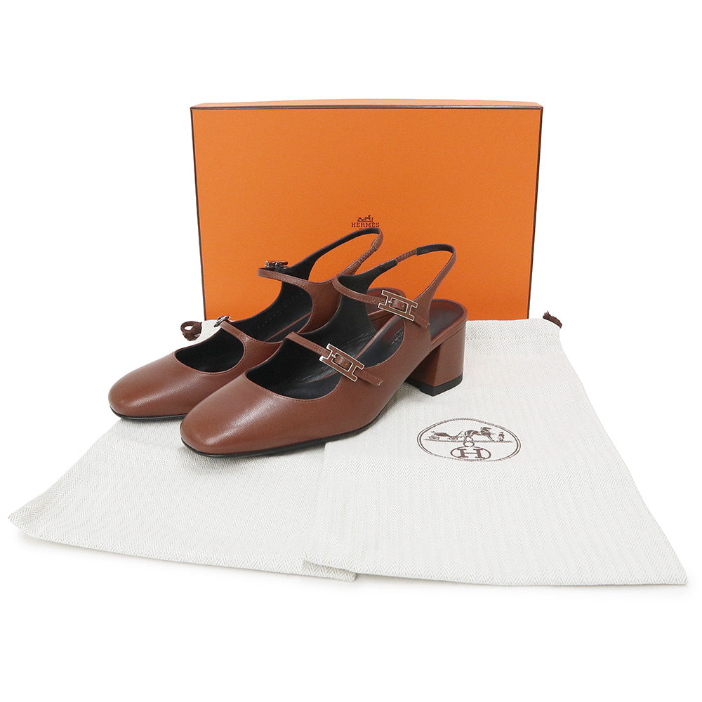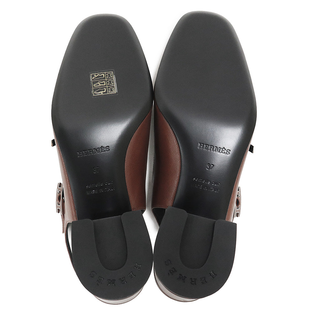 エルメスを象徴する「アピ(Hapi)」バックルが施された現代的でフェミニンな装いを演出するスリングバックパンプスです。バックルは、デザイナーのピエール・アルディのイニシャルに由来しています。