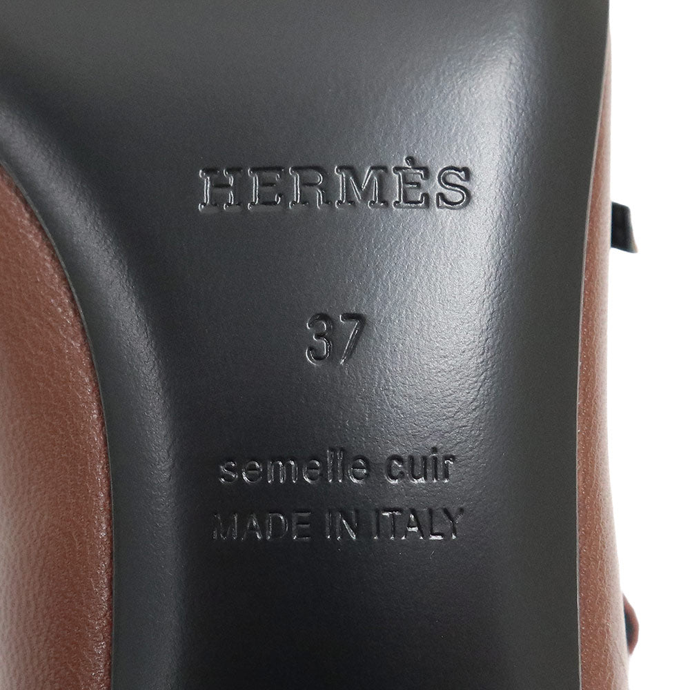 【未使用保管品】エルメス HERMES ジャッキー 50 パンプス 靴 #37 24cm レザー シェーブル レザー ゴールド ブラウン シルバー金具