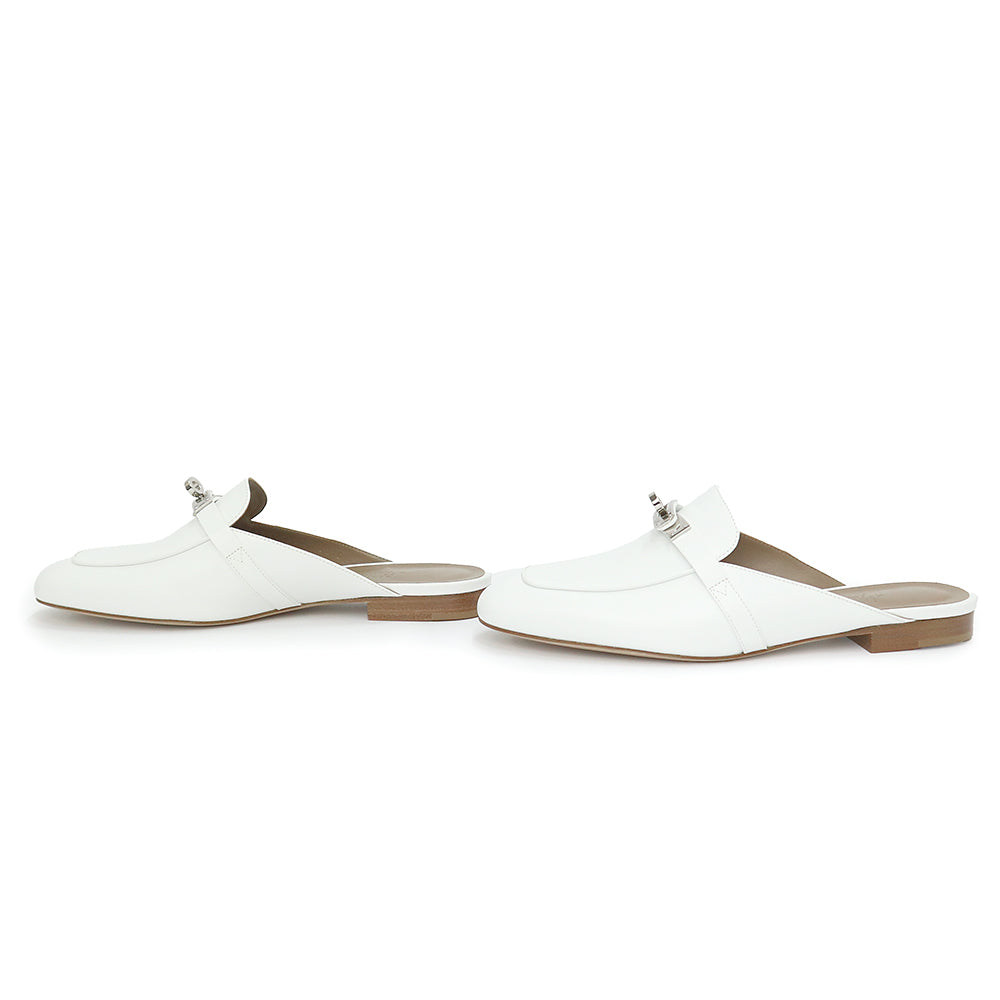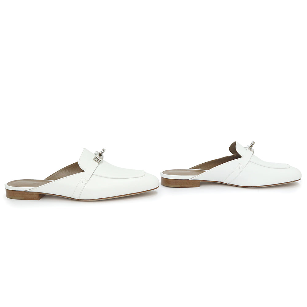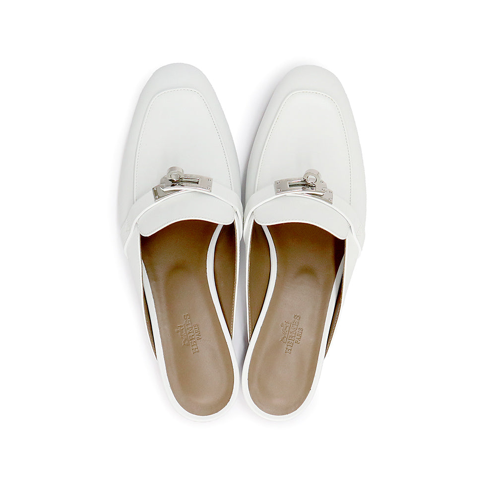 【新品・未使用品】HERMES エルメス 212296Z オズ カーフスキン ホワイト ベージュ ミュール 靴 #39 25.5cm レザー シルバー金具