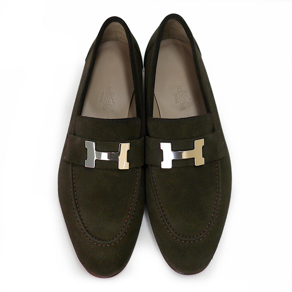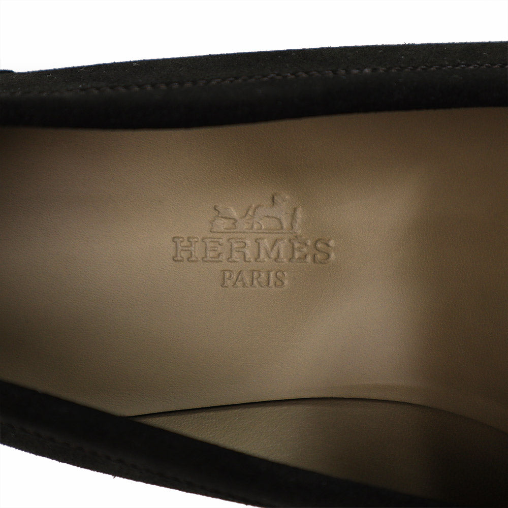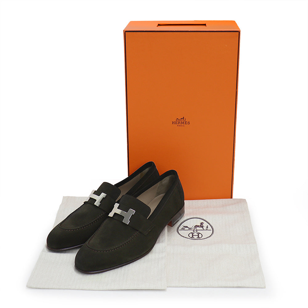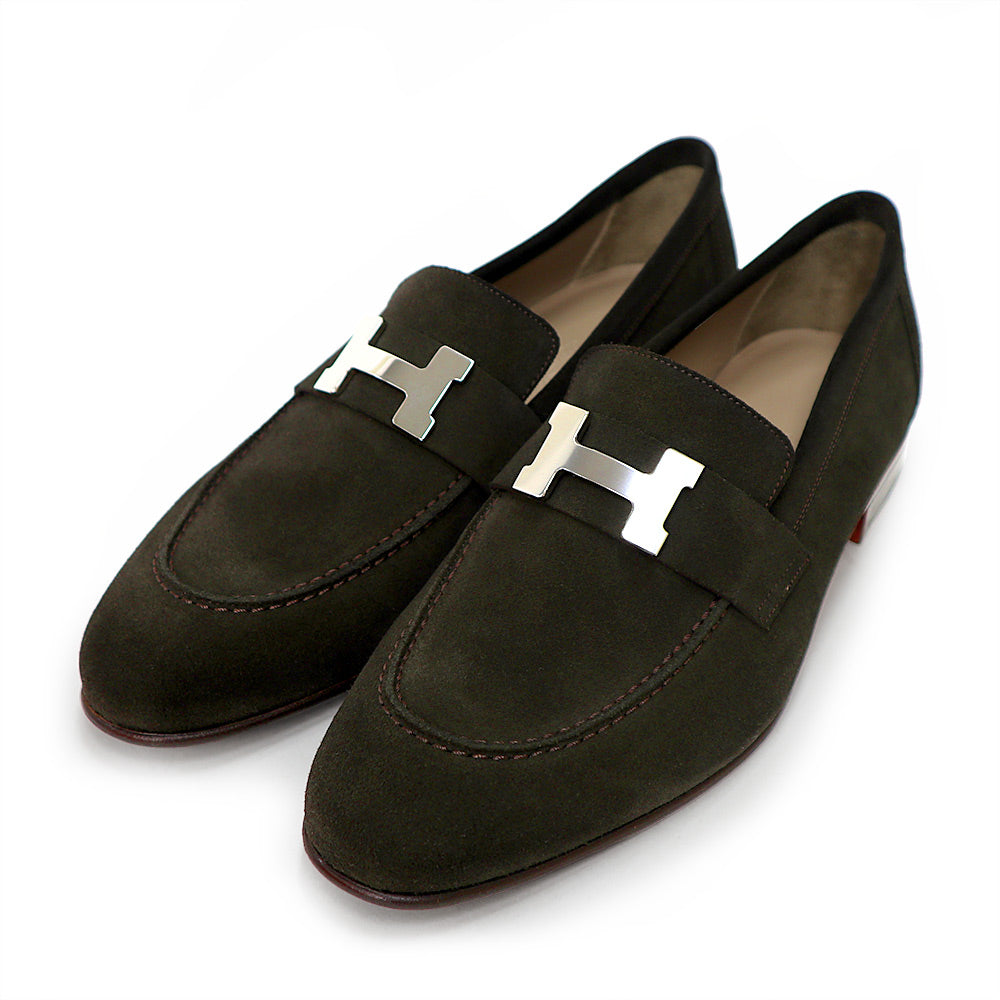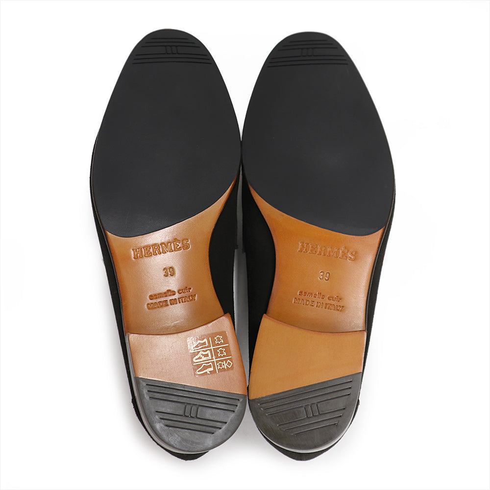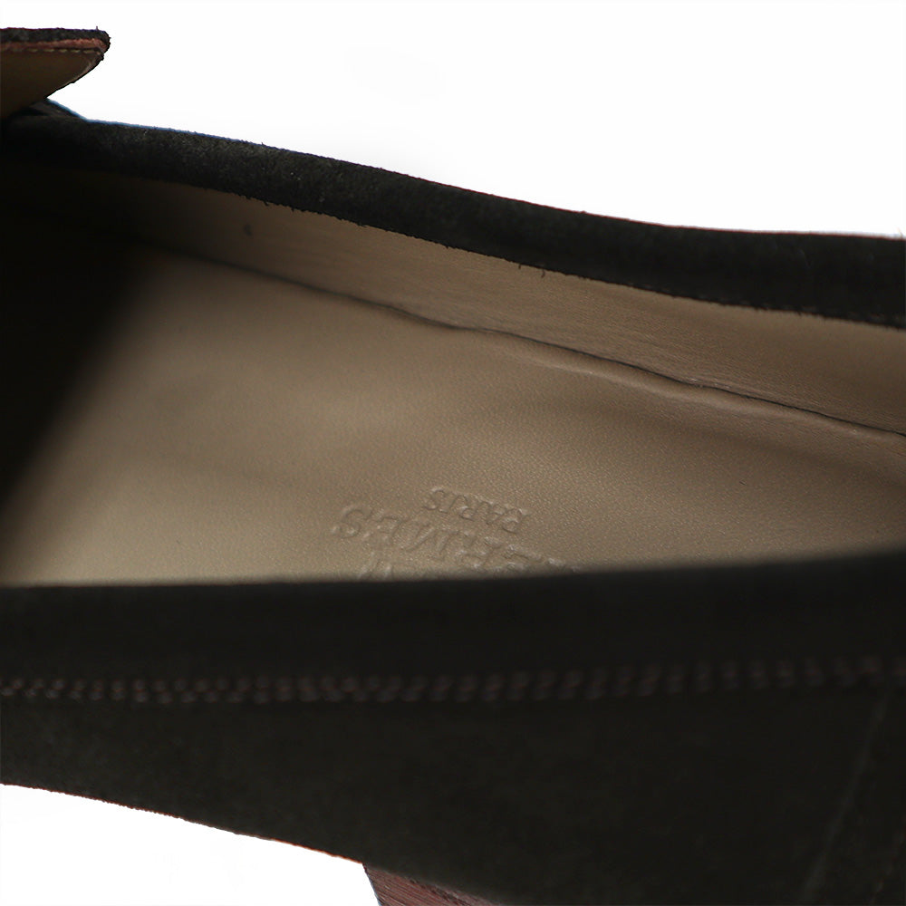 【未使用保管品】HERMES エルメス モカシン パリ ローファー シューズ 靴 39 25.5cm ヴォーベロア レザー ダークブラウン シルバー金具