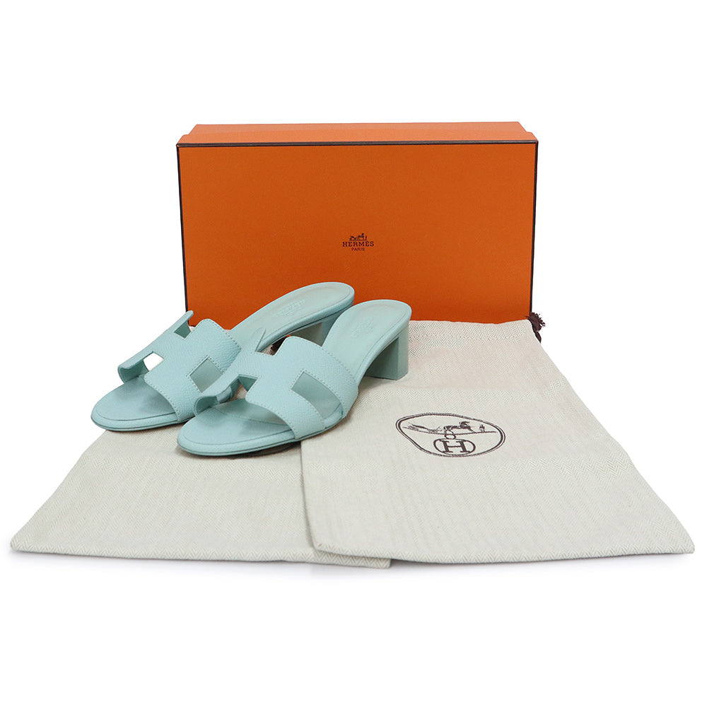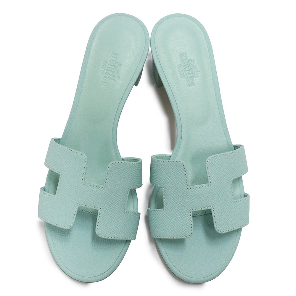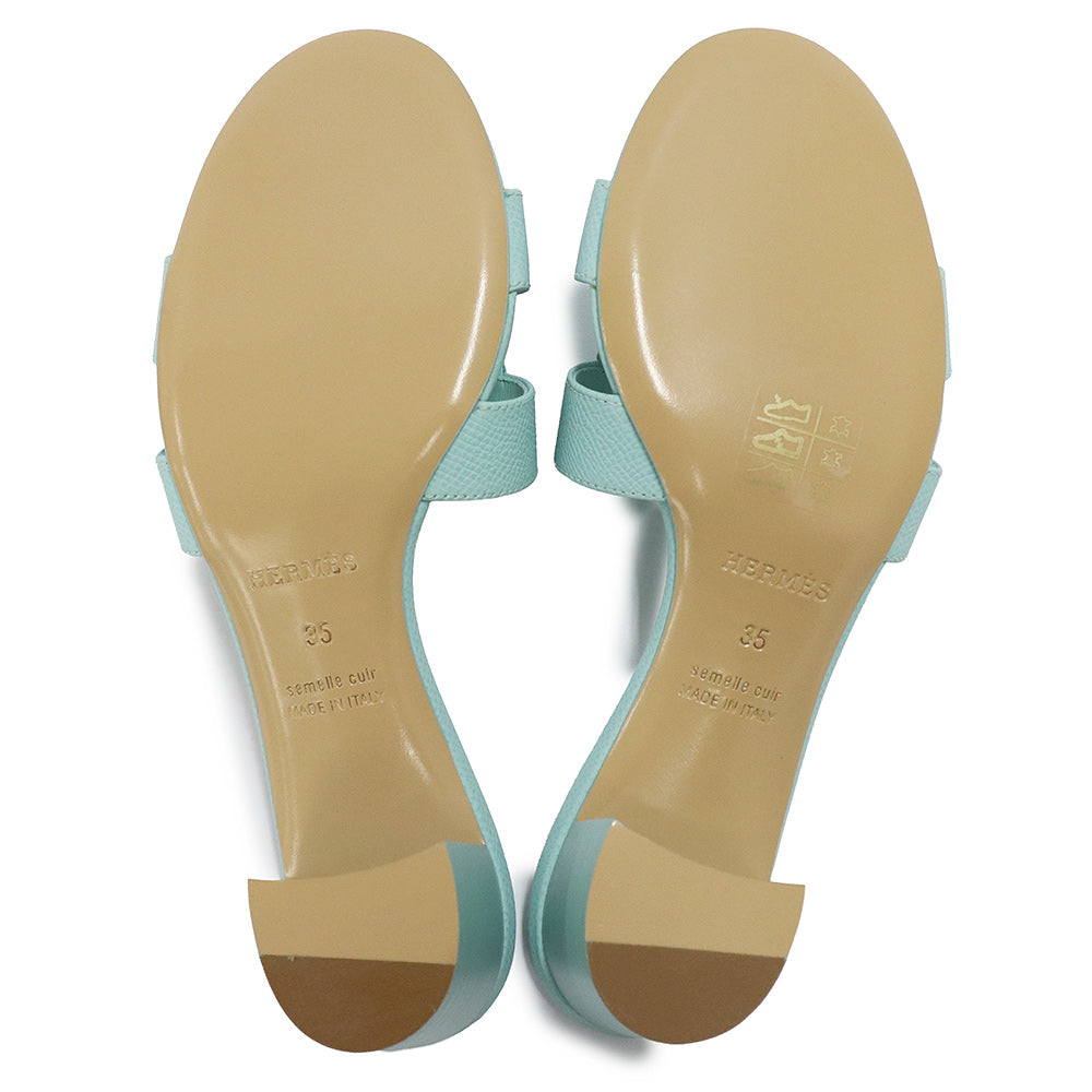 【未使用保管品】HERMES エルメス オアジス ヴォーエプソン Bleu brume ブルーブリュム サンダル 靴 #35 22cm レザー 箱付