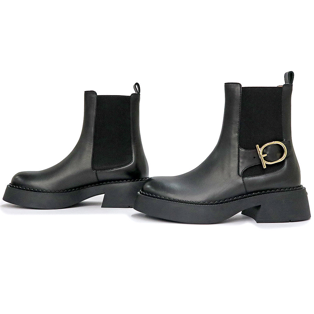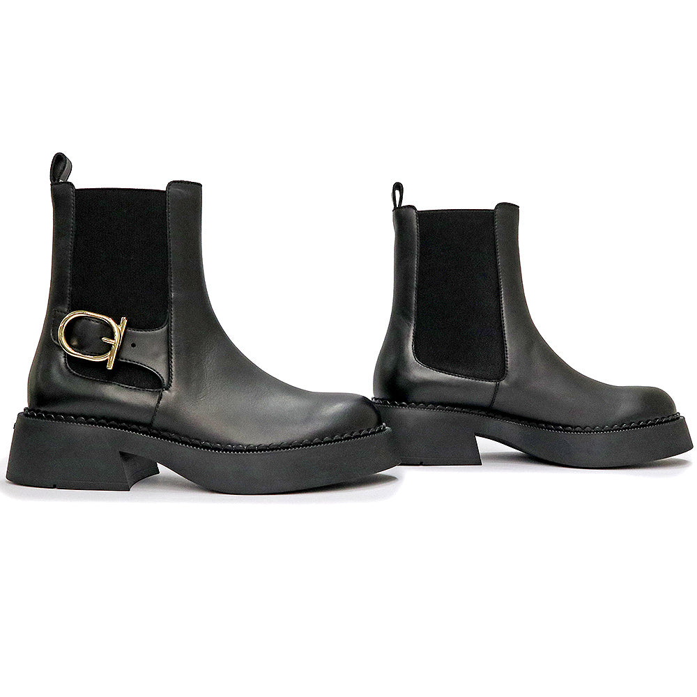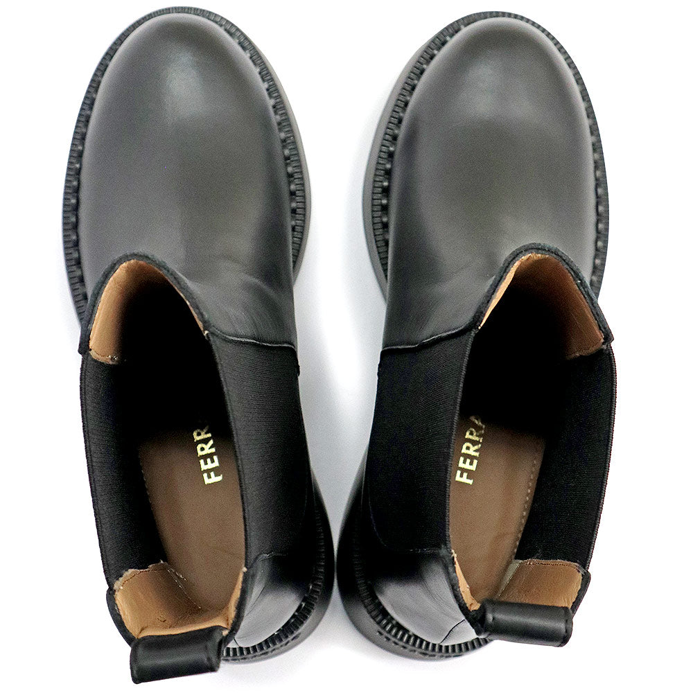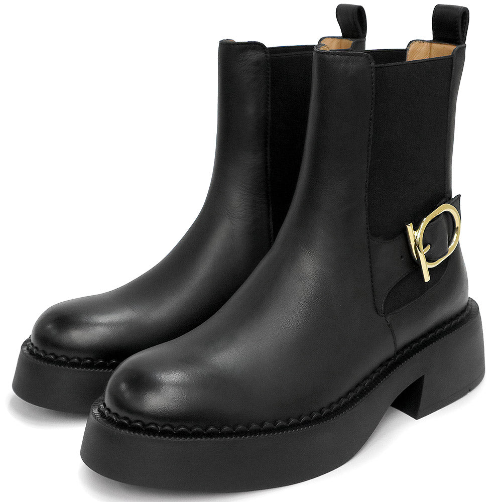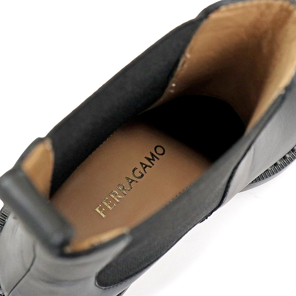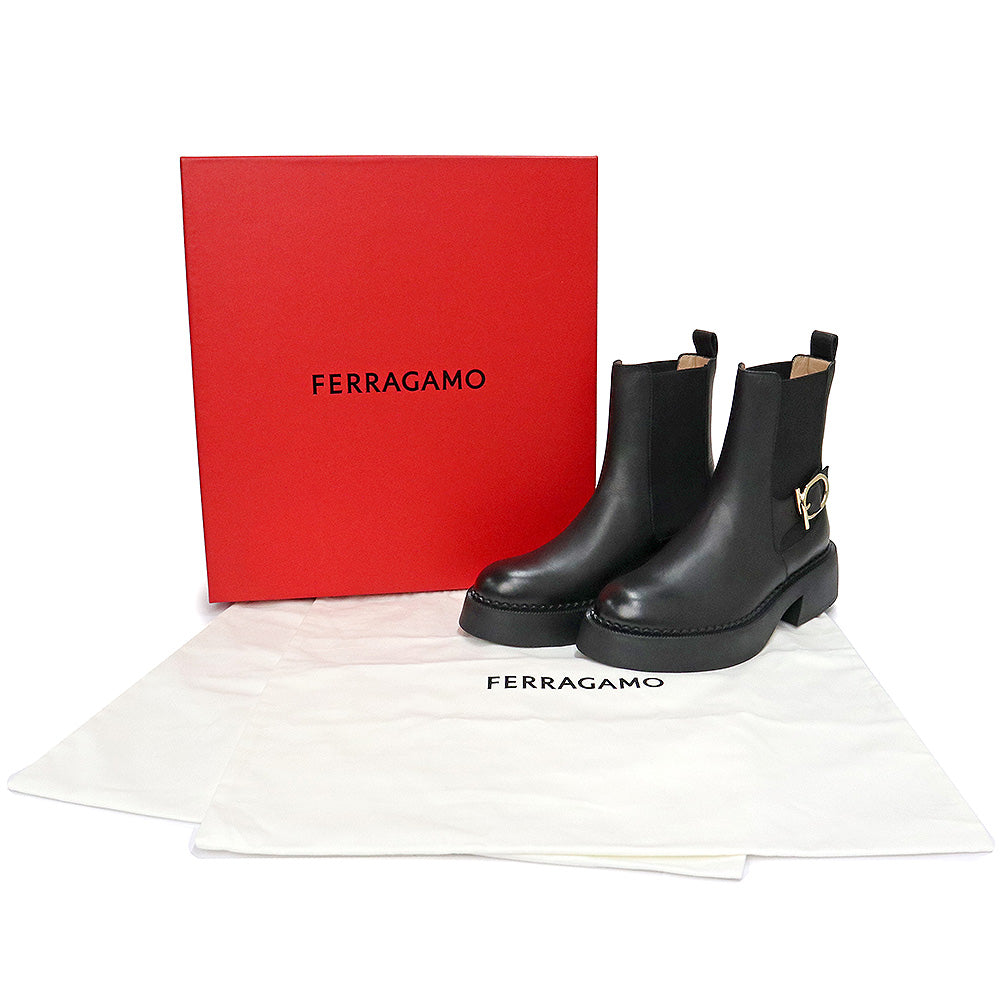 【未使用保管品】Salvatore Ferragamo サルヴァトーレフェラガモ 01K325 チェルシー ガンチーニ バックル カーフスキン ブラック ブーツ シューズ 靴 #5.5 23cm レザー ゴールド金具 箱付