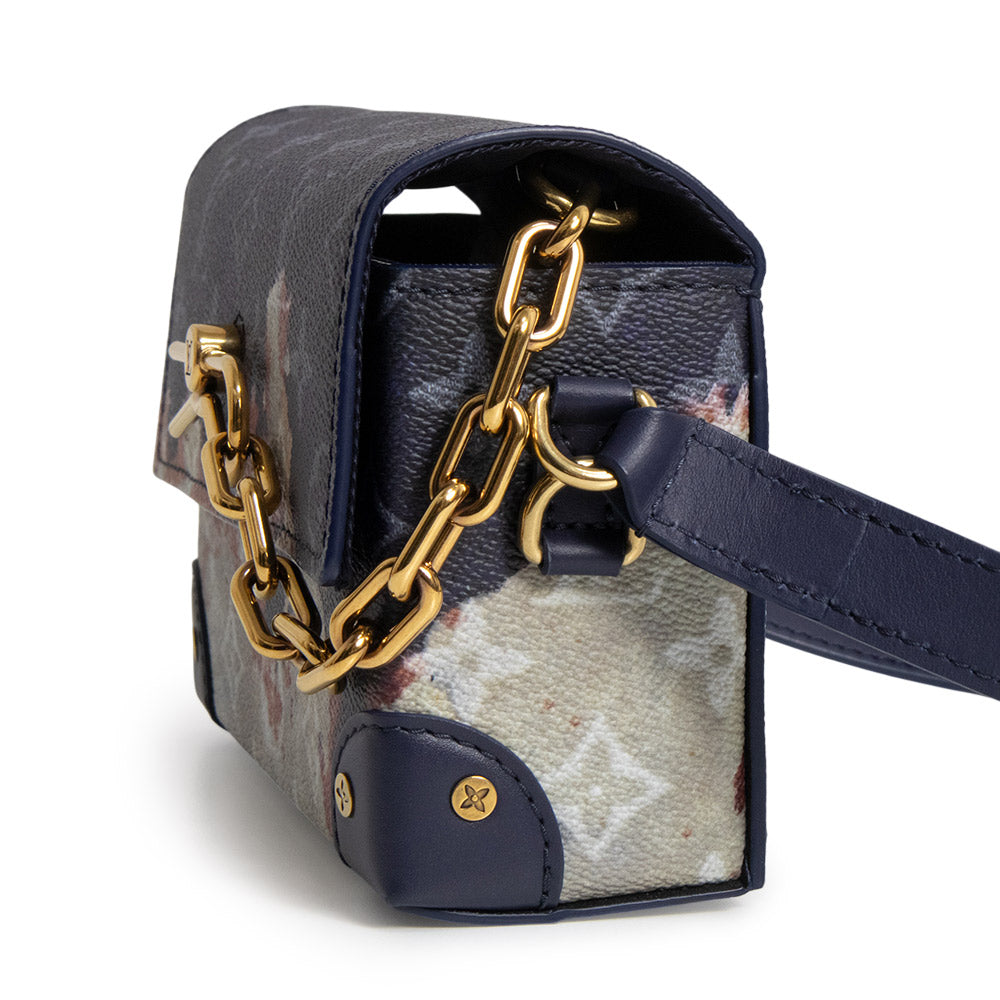 タイムレスなモノグラム・キャンバスをブリーチ加工で再解釈した「スティーマー ウェアラブル ウォレット」。深みのあるブルーアンクルとアンティークゴールド金具が、モダンで洗練された印象を演出します。コンパクトながら必需品をしっかり収納できます。 |