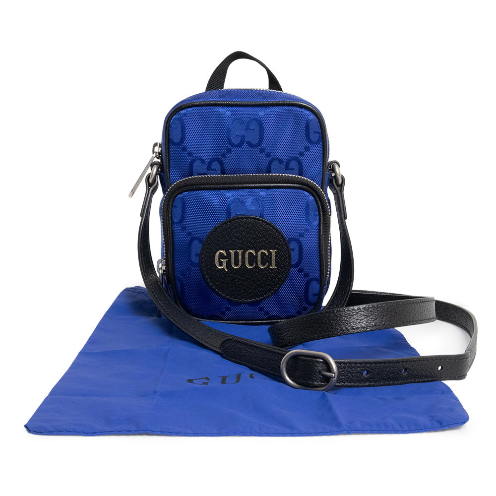 【新品・未使用品】GUCCI グッチ 643882 グッチ オフ ザ グリッド ミニ GGナイロン レザー ブルー ショルダーバッグ 斜め掛け アンティークシルバー金具