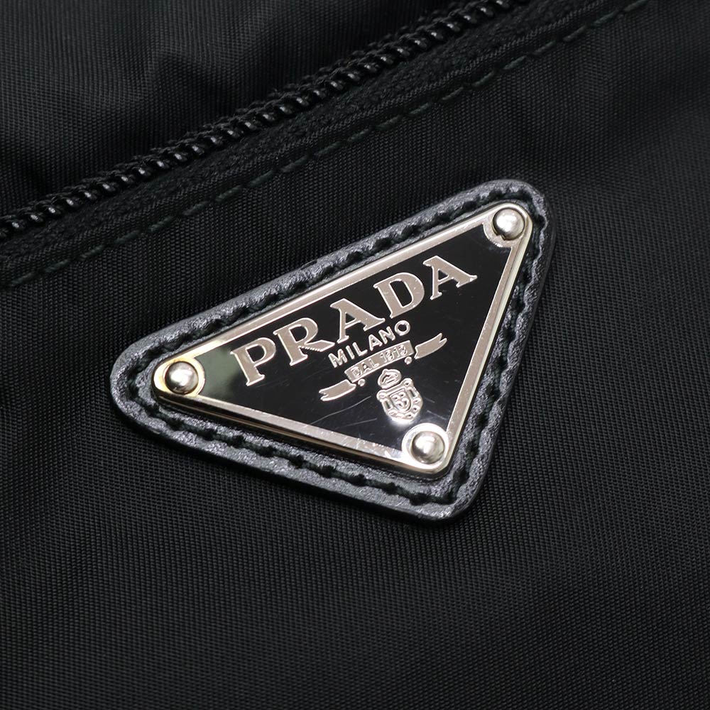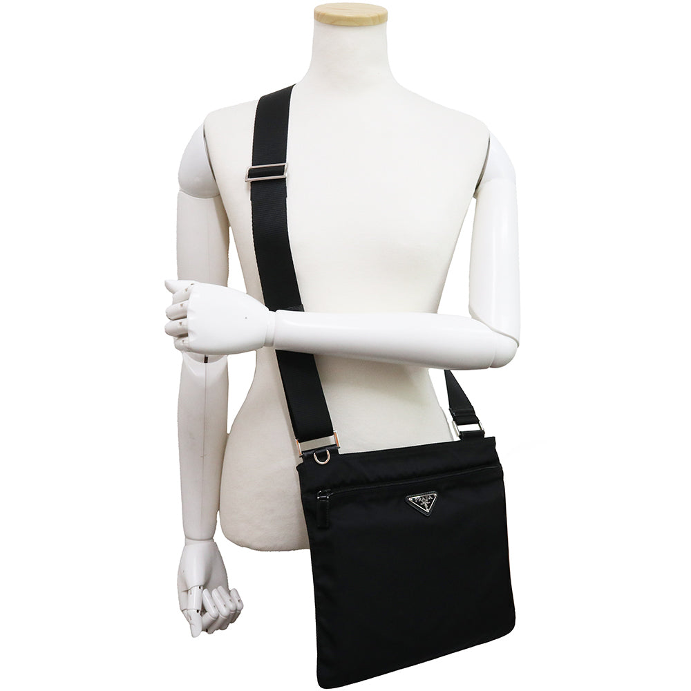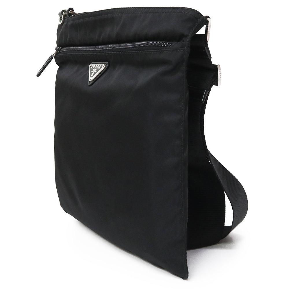 【中古】PRADA プラダ VA0251 三角ロゴ プレート ショルダー バッグ 斜め掛け テスート ナイロン サフィアーノ ネロ ブラック レザー シルバー金具