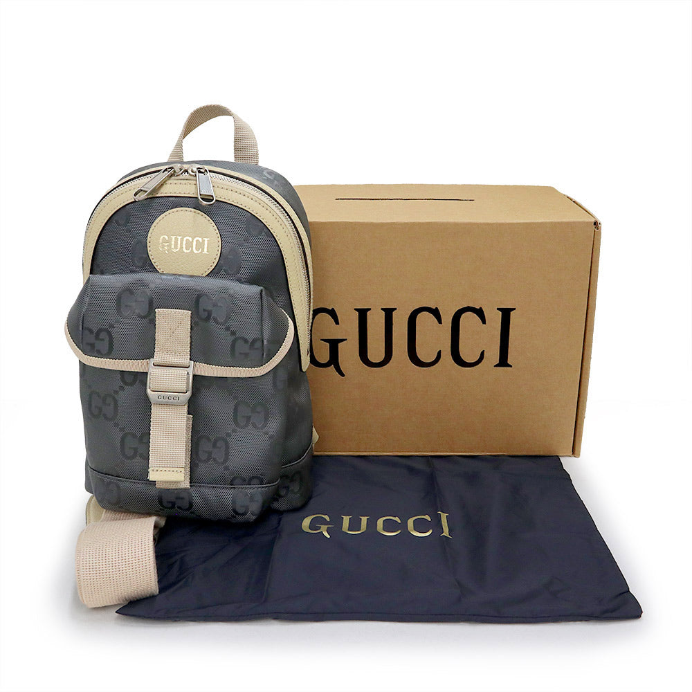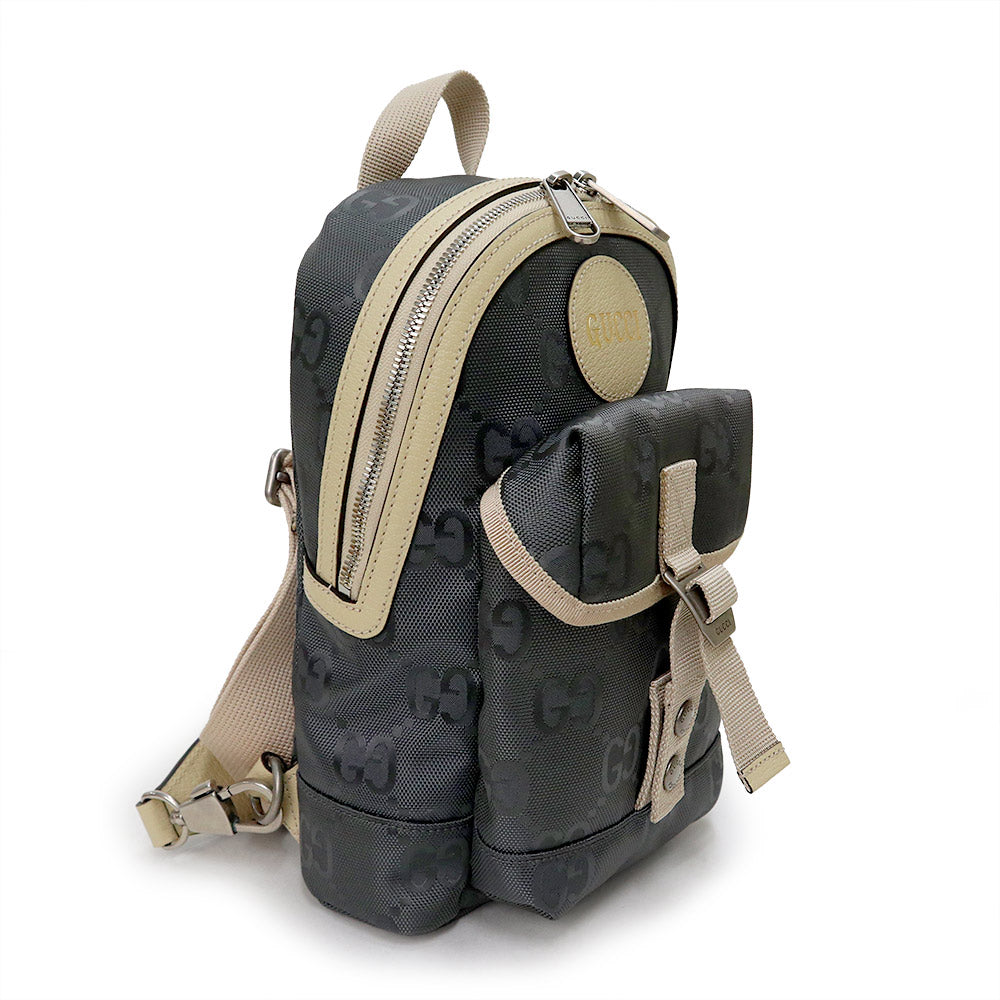 【未使用 展示品】GUCCI グッチ 658631 オフ ザ グリッド スリング バックパック ダークグレー ベージュ ショルダーバッグ 斜め掛け GGナイロン レザー アンティークシルバー金具 箱付