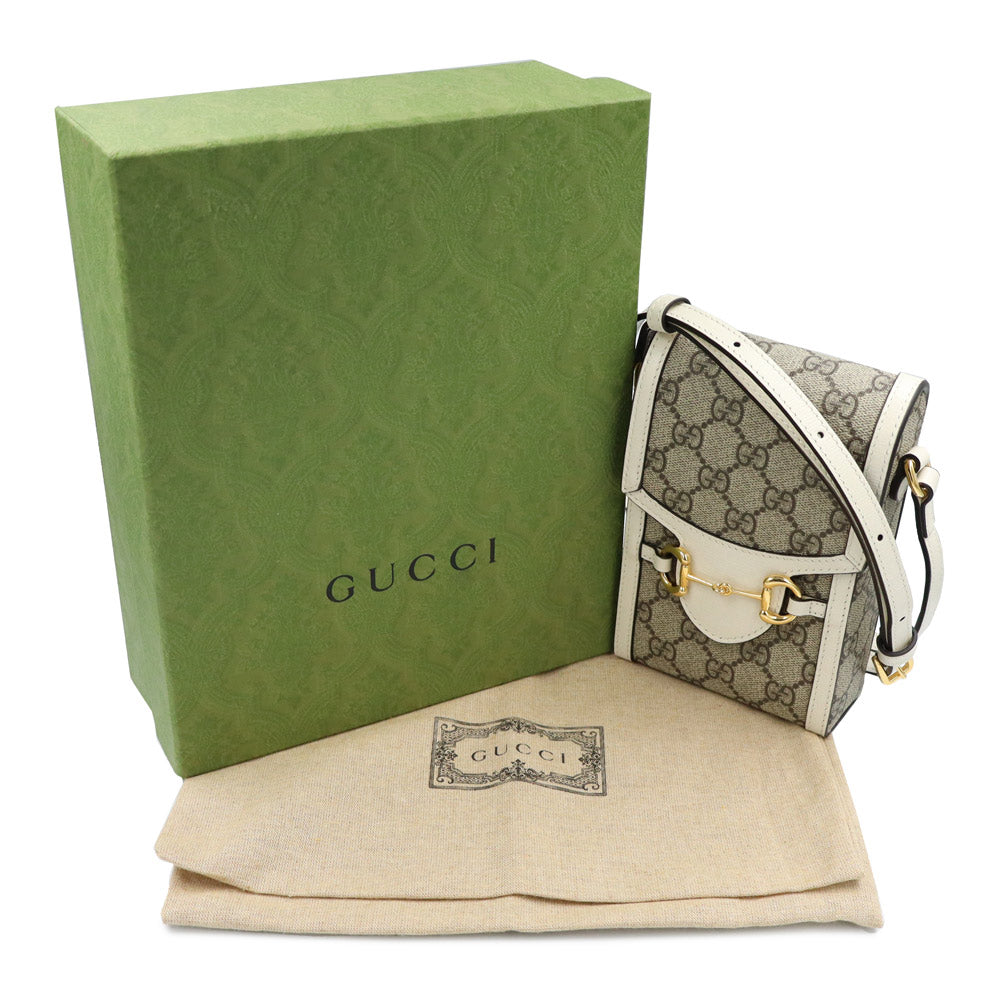 【新品・未使用品】GUCCI グッチ 625615 ホースビット1955 ミニバッグ GGスプリームキャンバス ブラウン ホワイト ショルダーバッグ 斜め掛け ゴールド金具 箱付
