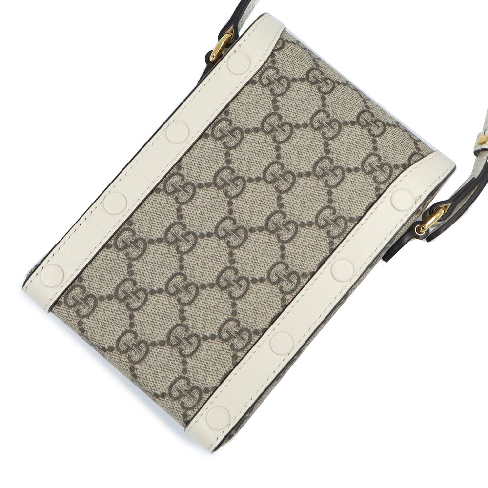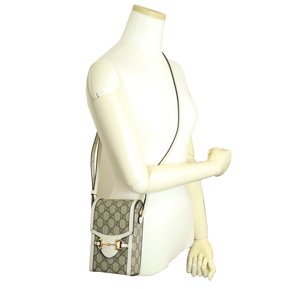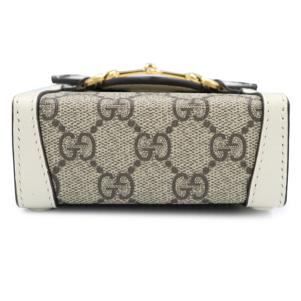 アイコニックなGGスプリームキャンバスにホワイトレザーとホースビット金具が映える上品なミニバッグです。コンパクトながら存在感があり、コーディネートのアクセントとして幅広いシーンで活躍します。