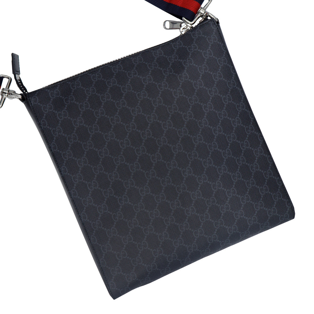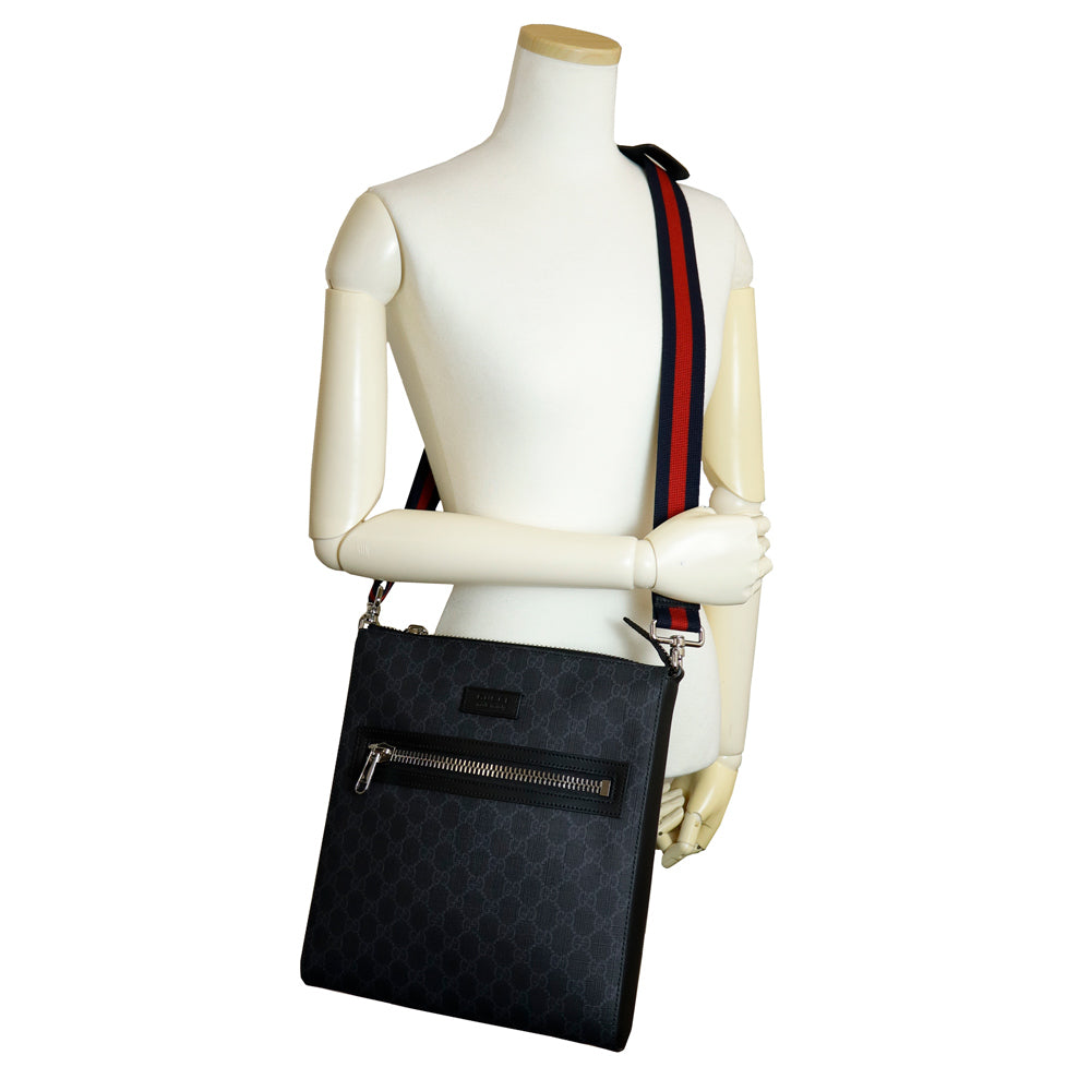 【未使用 展示品】GUCCI グッチ 474137 メッセンジャー GGスプリームキャンバス レザー ブラック ショルダーバッグ 斜め掛け シルバー金具