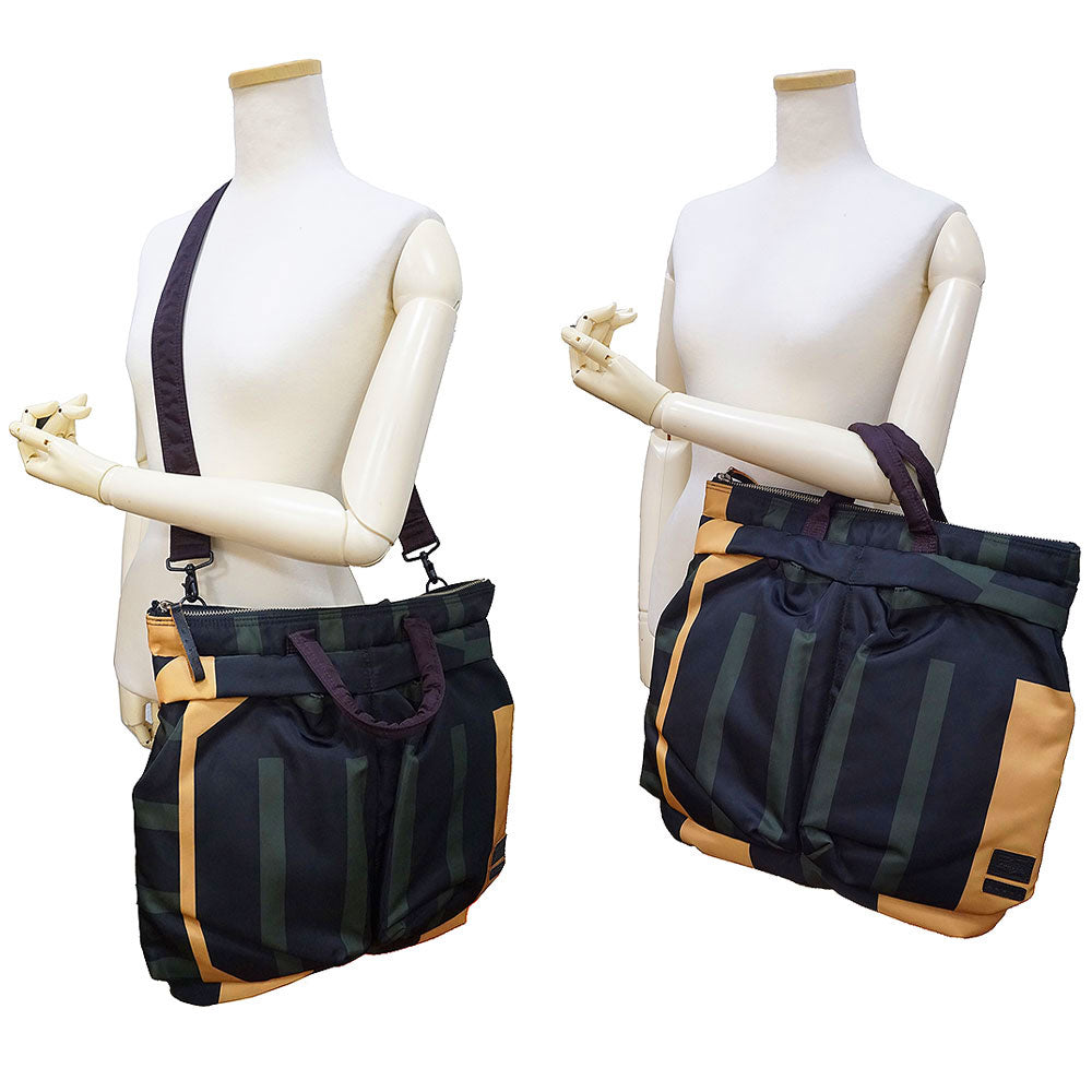 【中古】MARNI マルニ PORTER ポーター タンカー SURF COLLECTION ナイロン ブラック グリーン イエロー ブラウン 2WAY ショルダー トート ヘルメットバッグ 斜め掛け シルバー金具