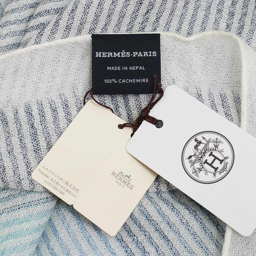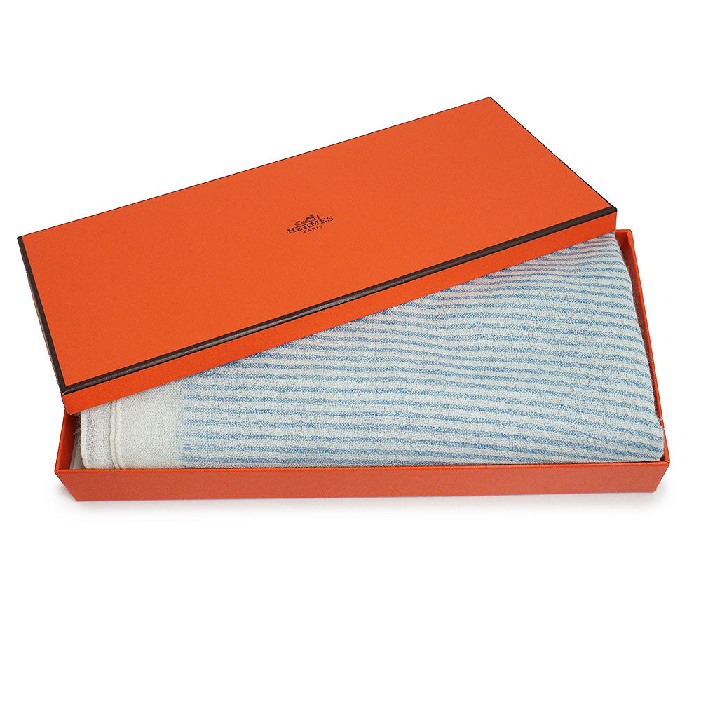 【新品・未使用品】愛馬仕 HERMES 地平線 大型 披肩 圍巾 圍巾 羊絨 100% 漸層 藍色 藍 帶盒