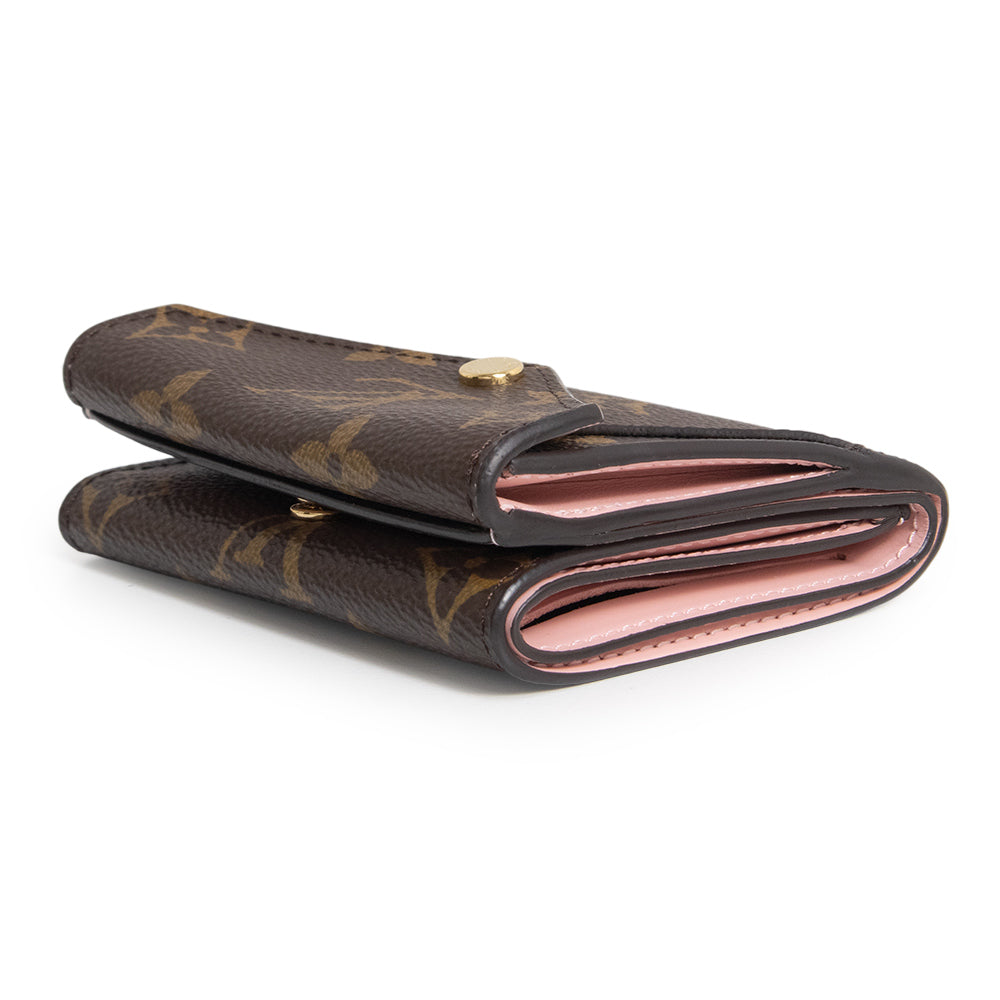 【新品同様品】ルイ ヴィトン LOUIS VUITTON ポルトフォイユ セレスト 三つ折り財布 モノグラム マロン ブラウン ローズバレリーヌ ピンク ゴールド金具 M81665 箱付