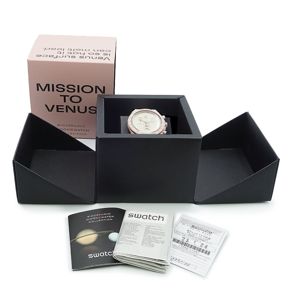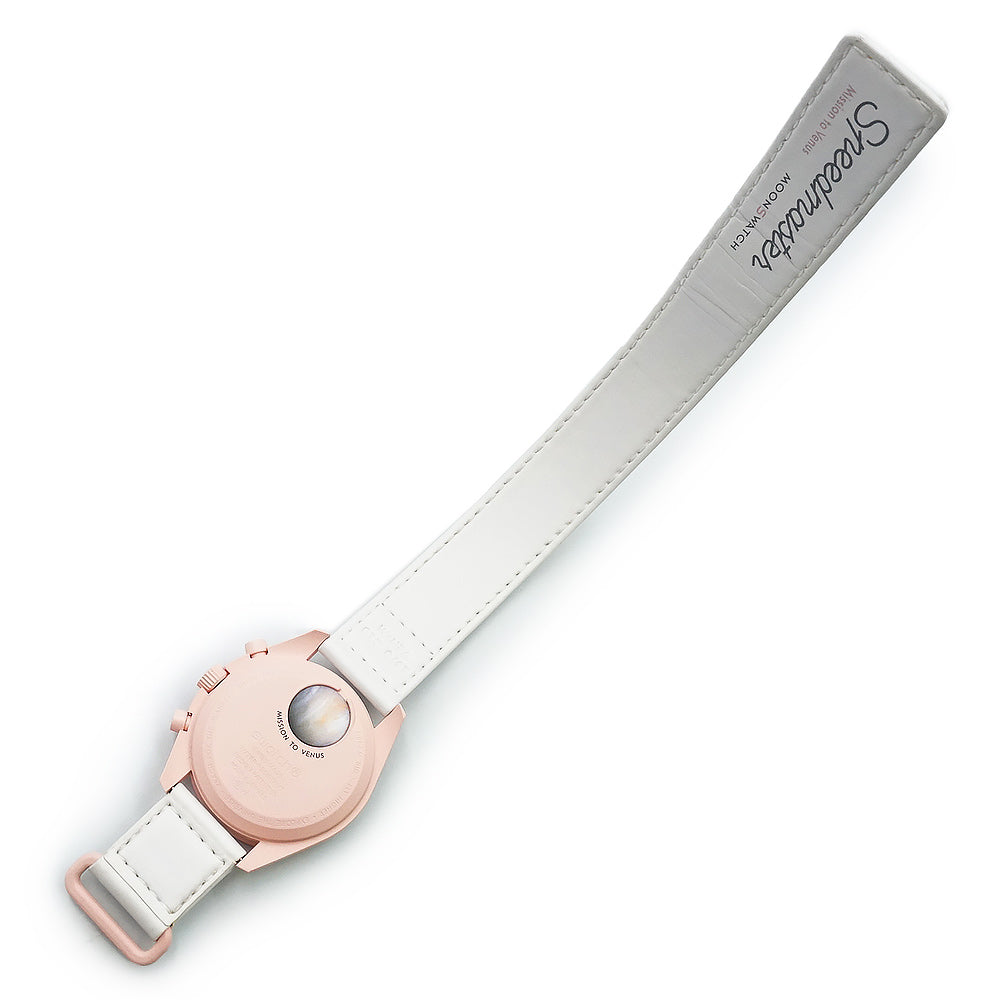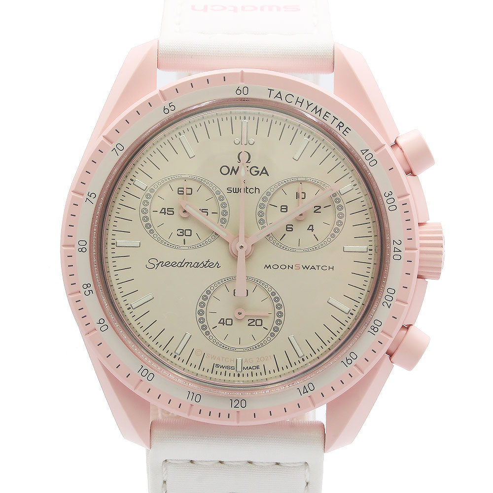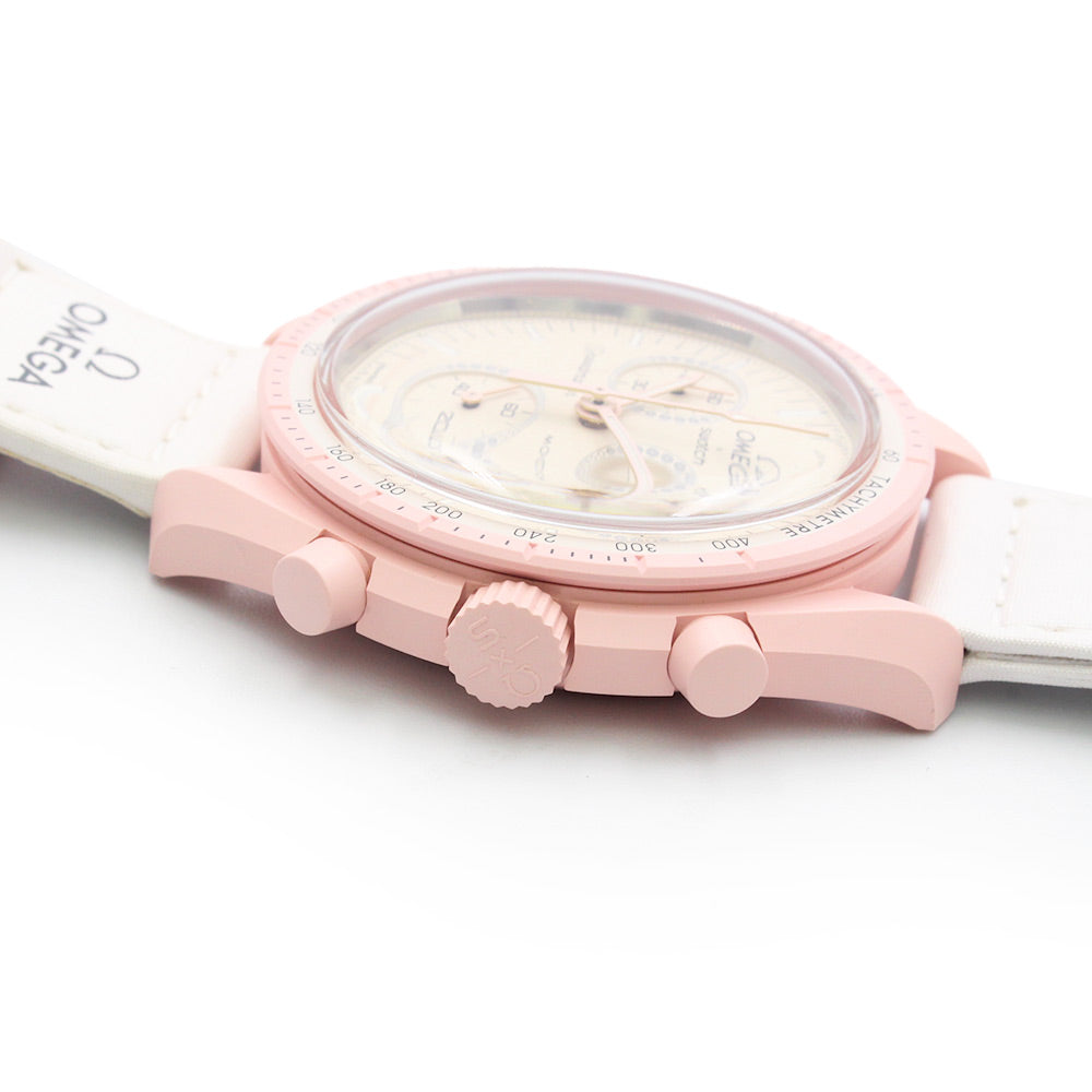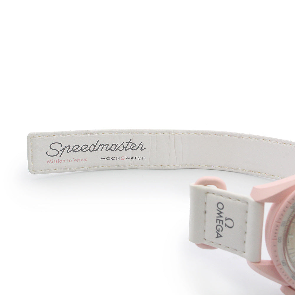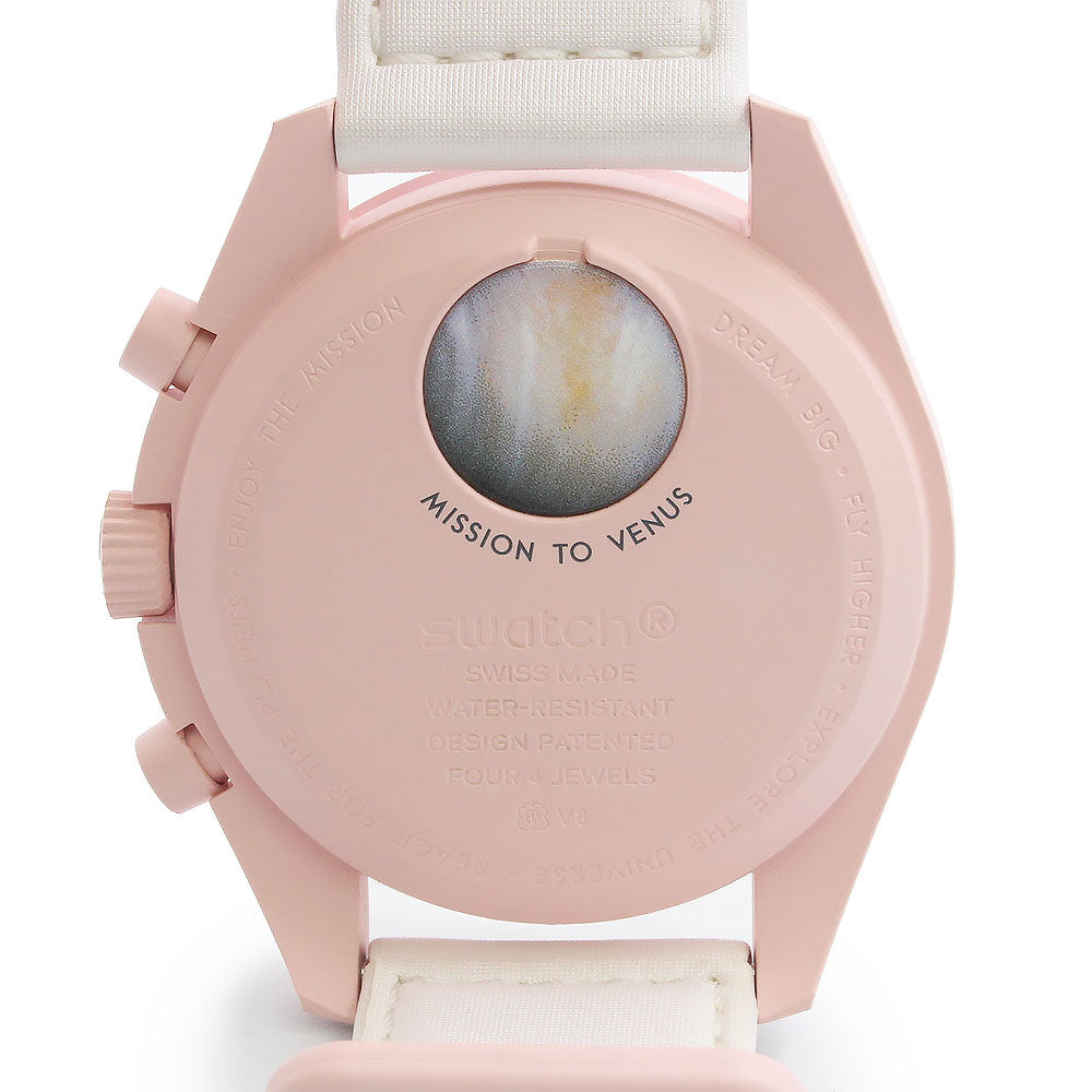 【未使用 展示品】OMEGA オメガ Swatch スウォッチ SO33P100 ミッション オン ヴィーナス MISSION ON VENUS スピードマスター ムーンスウォッチ クロノグラフ クオーツ 腕時計 ナイロン バイオセラミック パステルピンク ホワイト アイボリー 箱付