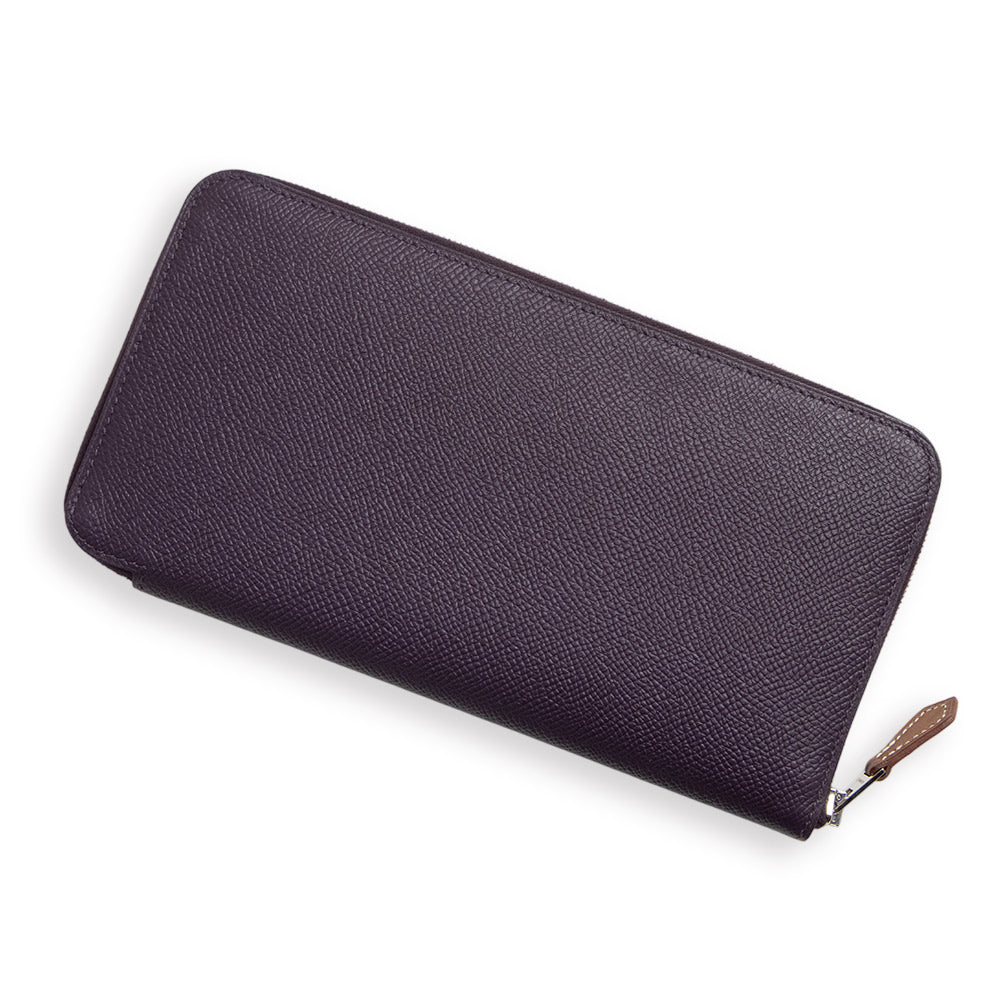 【新品・未使用品】エルメス HERMES アザップ ロング シルクイン Panoptie Equestre 乗馬の装具一式 ラウンドファスナー 長財布 ヴォーエプソン レザー Raisin レザン パープル シルバー金具 D刻印 箱付
