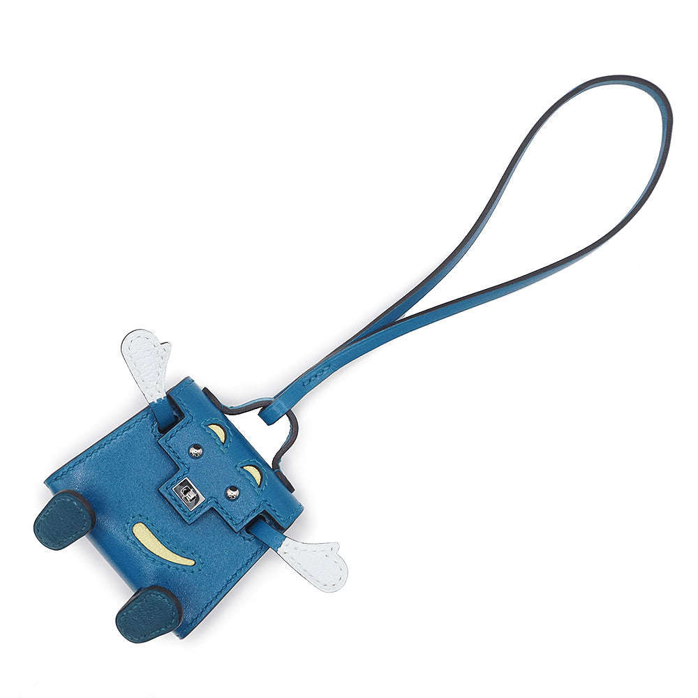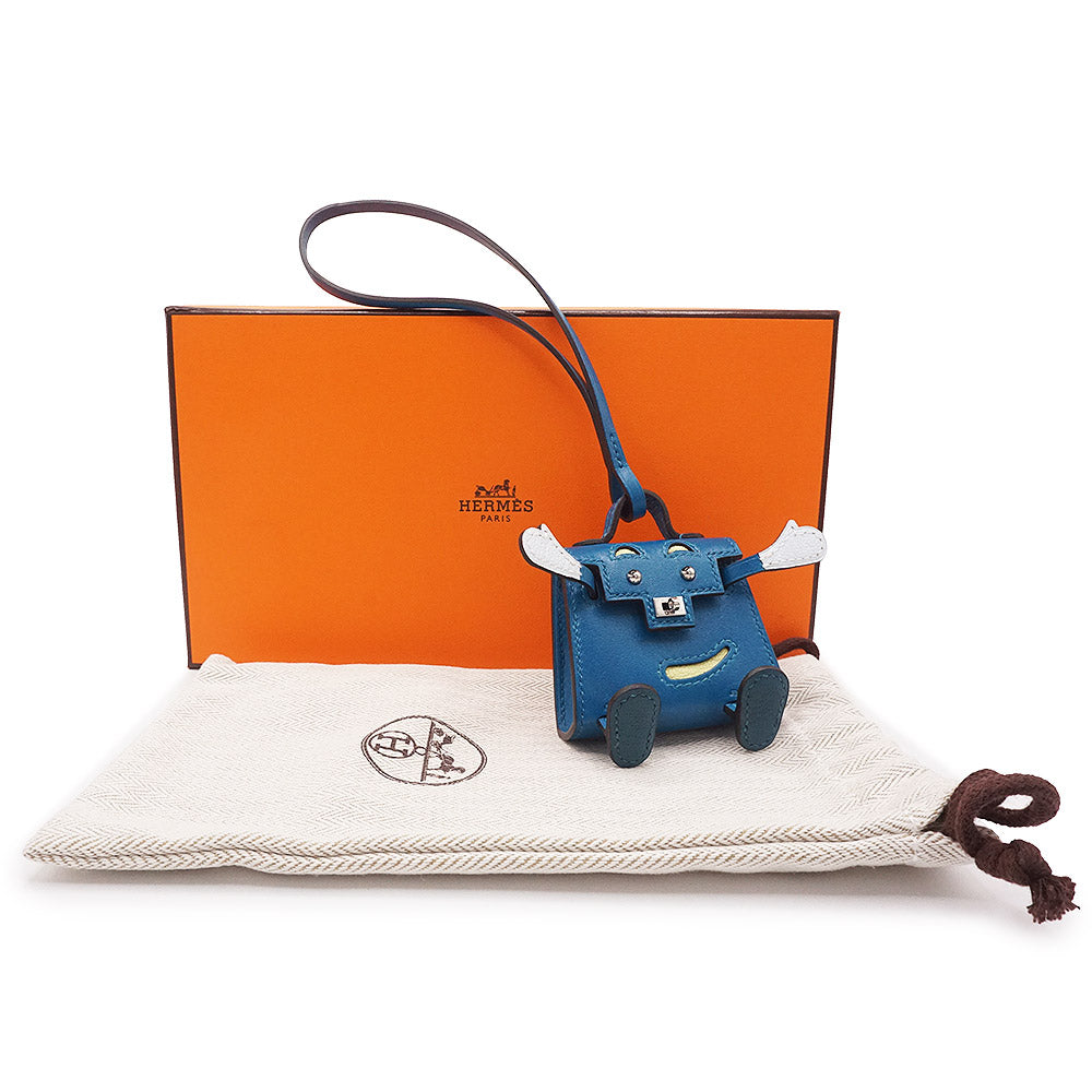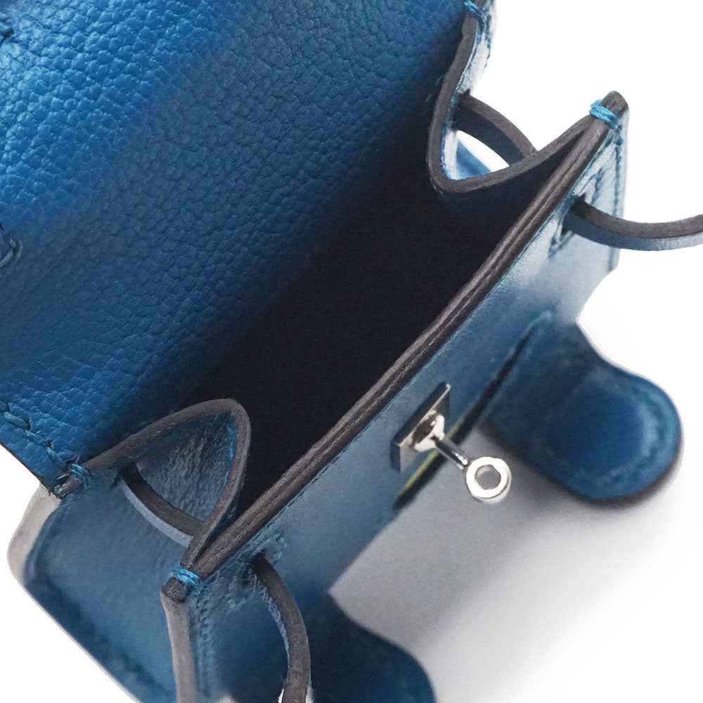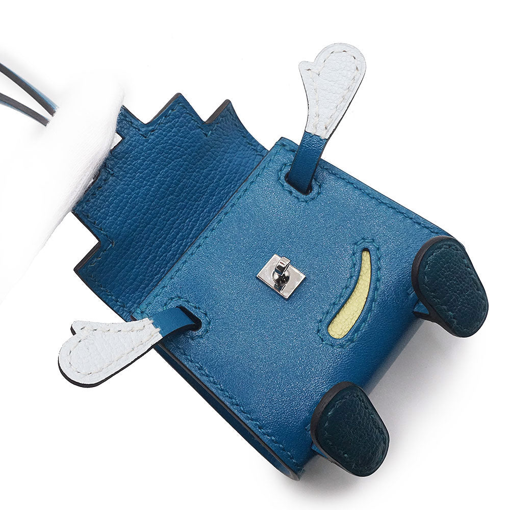 【新品・未使用品】愛馬仕 HERMES 珠寶包 Kelly Doll 包包吊飾 Vau de Lacte 山羊皮 山羊皮大號 皮革 藍色伊茲米爾 藍色布呂姆 綠色博斯普魯斯 黃色芽 青色 銀色金具 Z刻印
