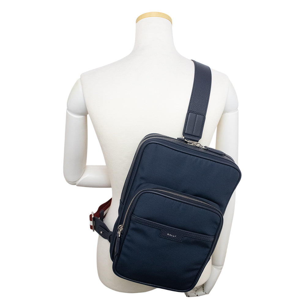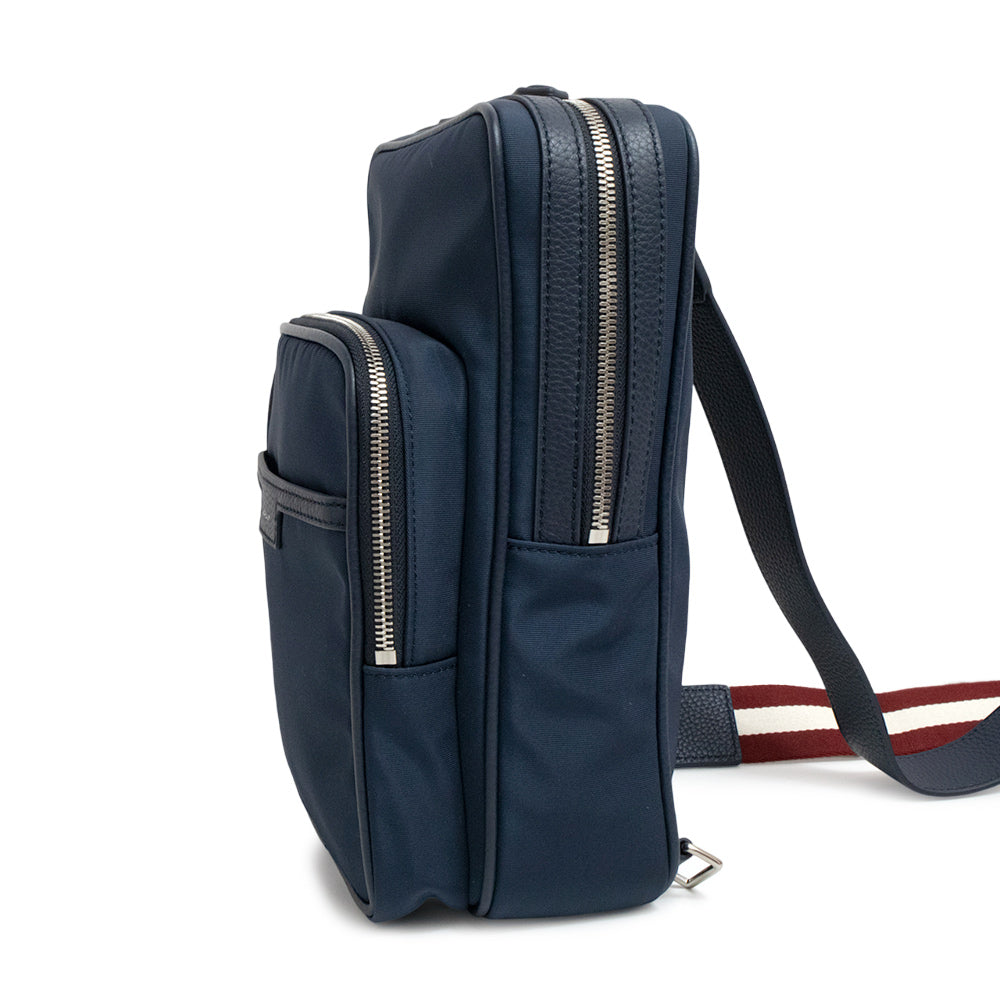 【新品・未使用品】バリー BALLY CODE SLING BAG コードスリングバッグ ショルダー ボディバッグ 斜め掛け ナイロン レザー ネイビー シルバー金具 6307015