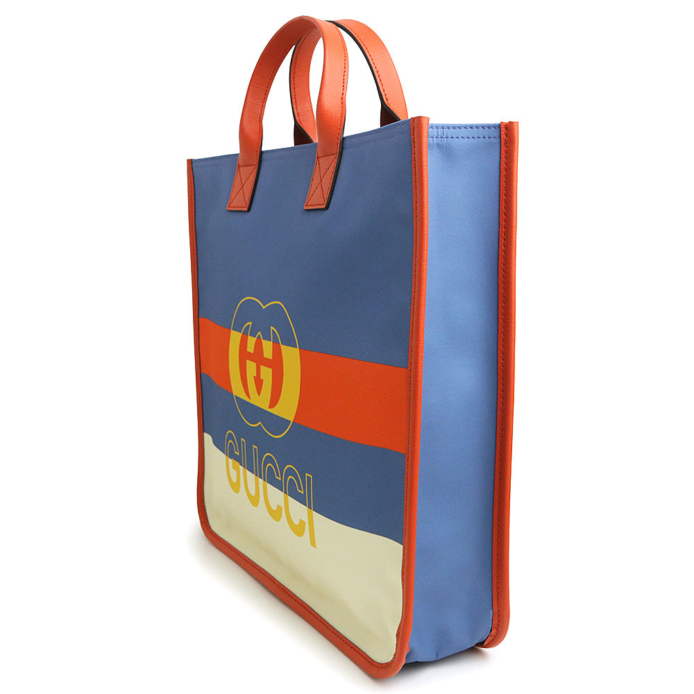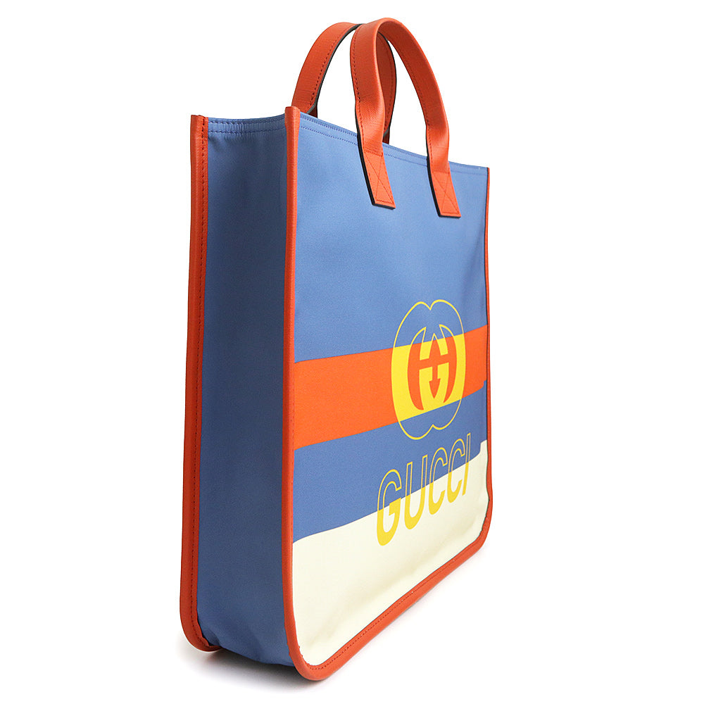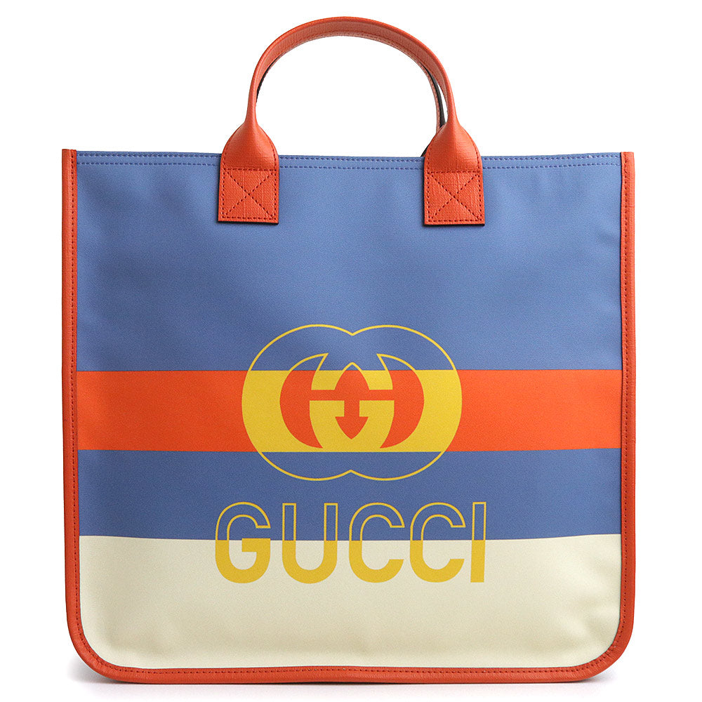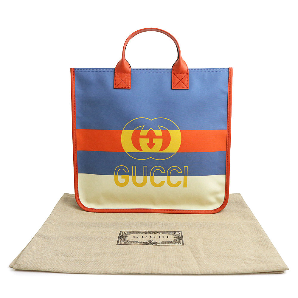 【未使用 展示品】GUCCI グッチ 550763 ウェブ ストライプ チルドレンズ インターロッキングG プリント ナイロン レザー マルチカラー ブルー オレンジ ホワイト トートバッグ
