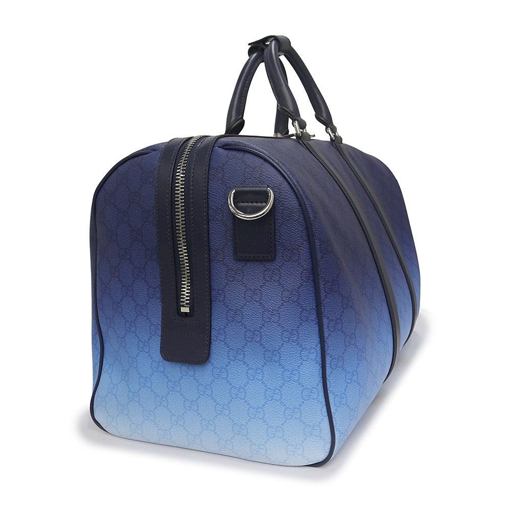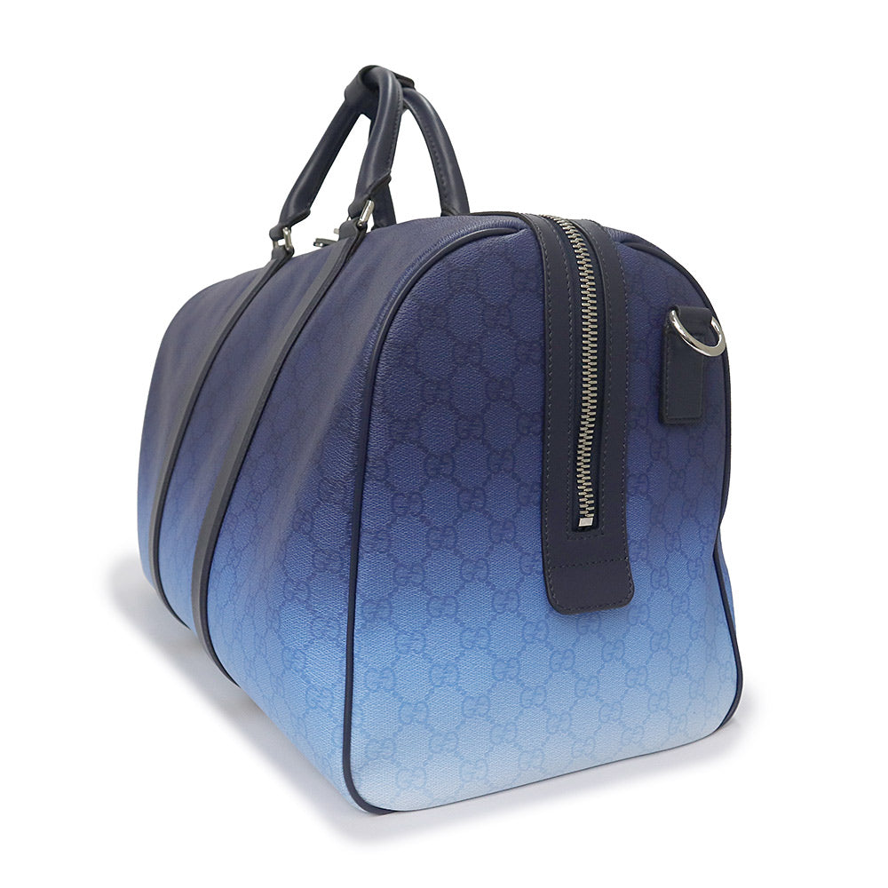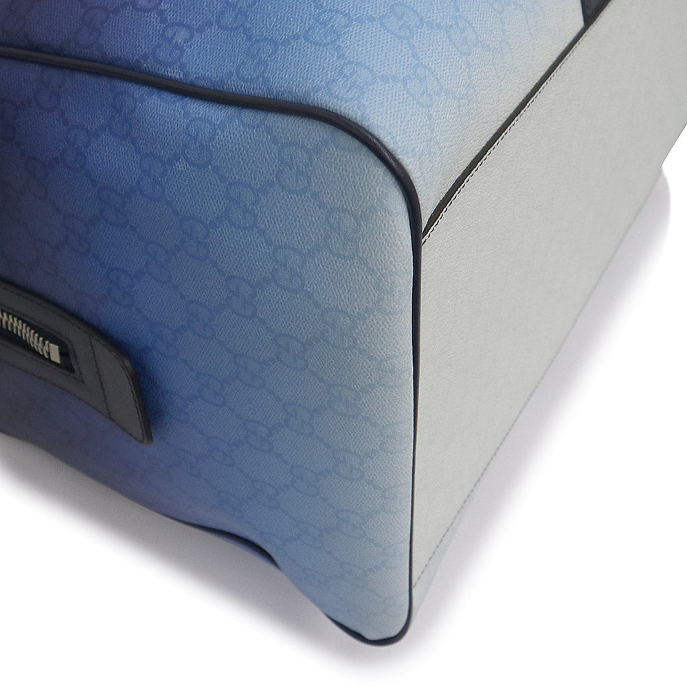 【未使用 展示品】GUCCI グッチ 835688 クローマ GGパターンコーティングファブリック YUZURU BLUE ブルー 2way ショルダー グラデーション ミディアム ダッフル ボストンバッグ 斜め掛け 旅行鞄 シルバー金具