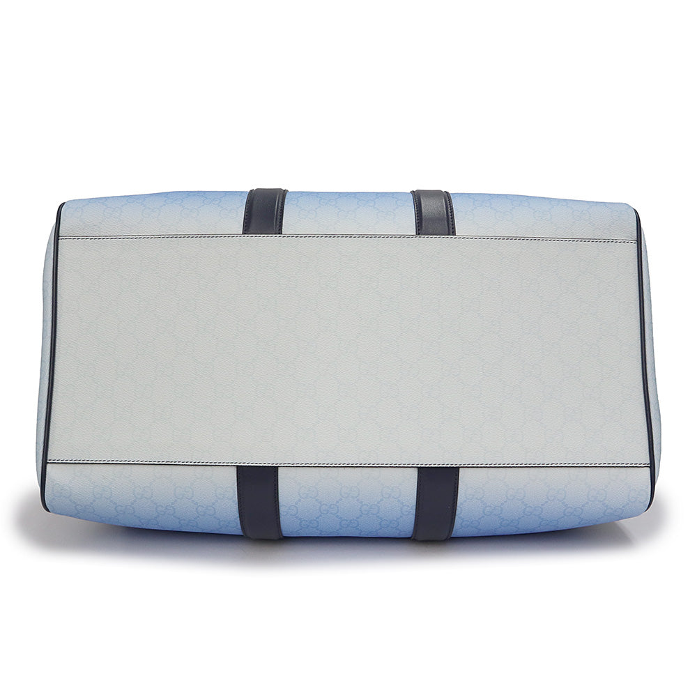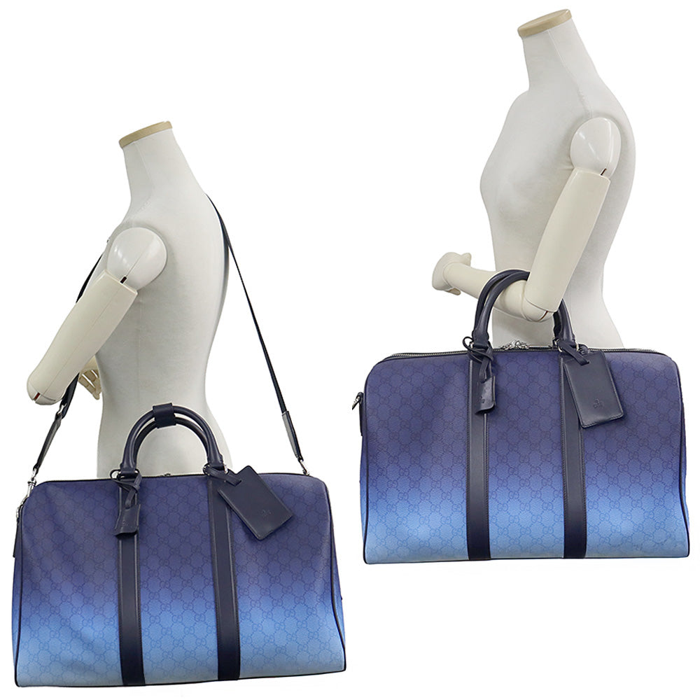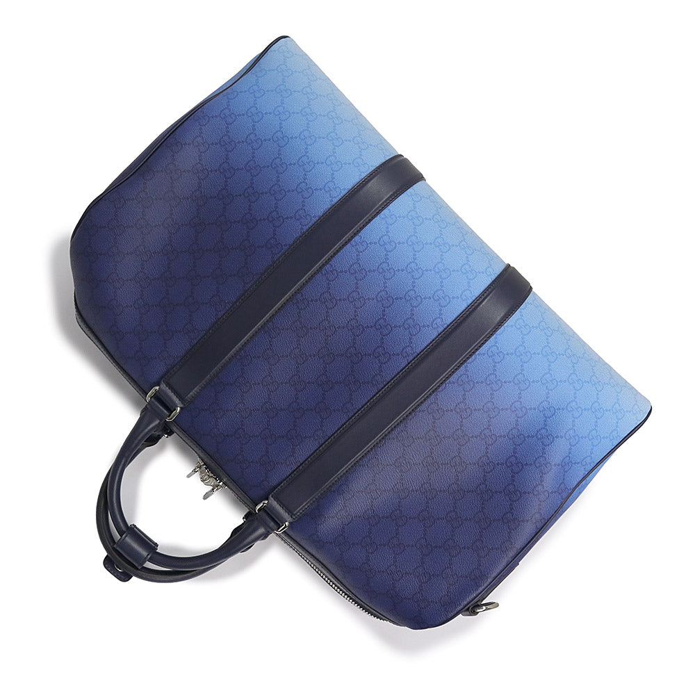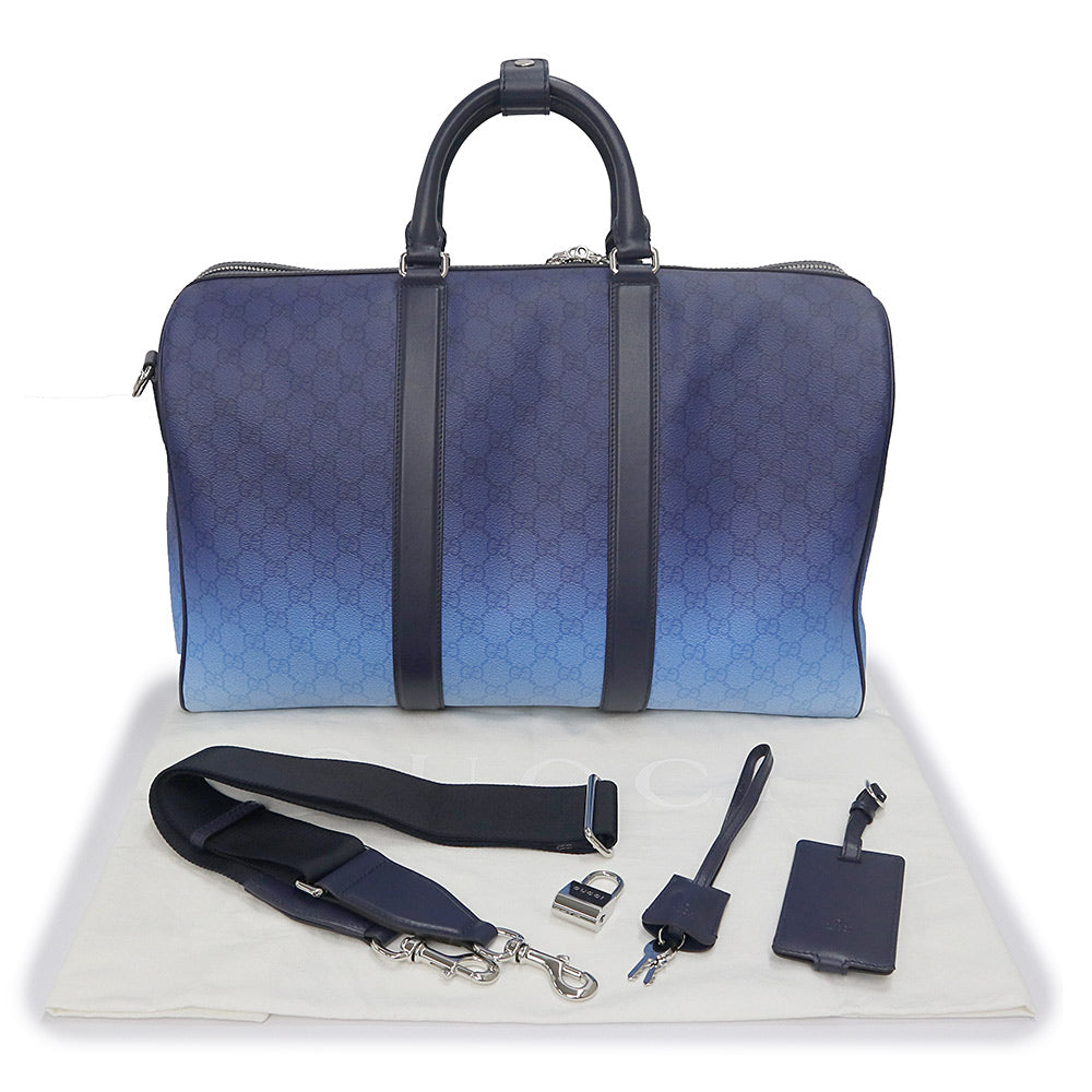 【未使用 展示品】GUCCI グッチ 835688 クローマ GGパターンコーティングファブリック YUZURU BLUE ブルー 2way ショルダー グラデーション ミディアム ダッフル ボストンバッグ 斜め掛け 旅行鞄 シルバー金具
