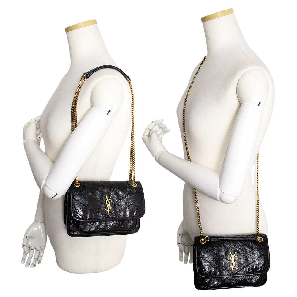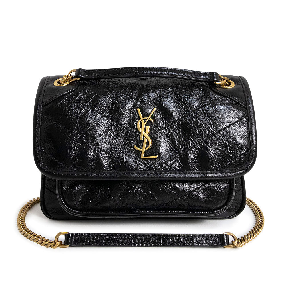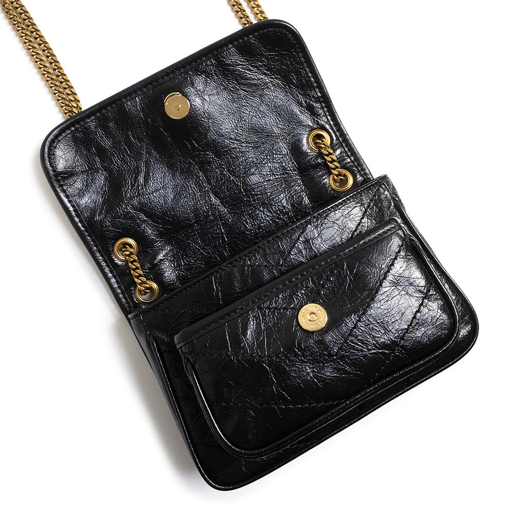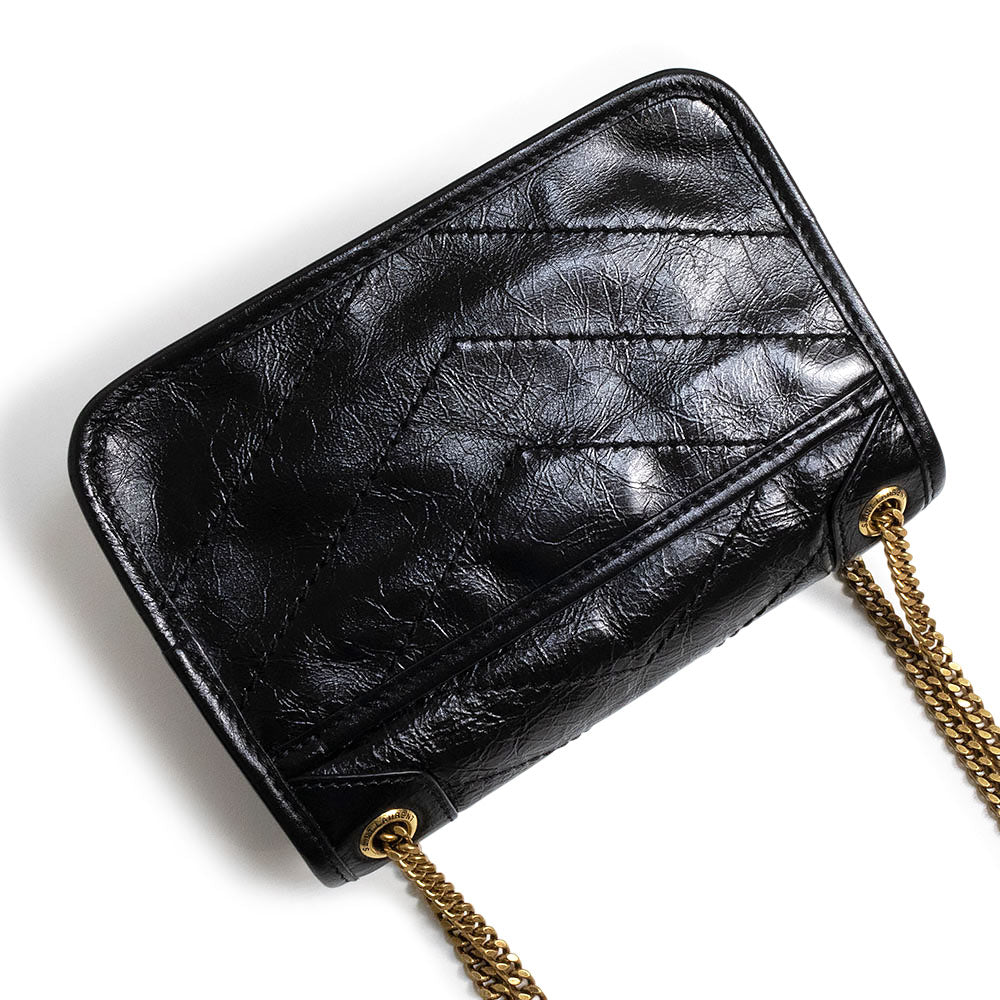 【未使用 展示品】SAINT LAURENT PARIS サンローランパリ 846087 ニキ ミニ ヴィンテージレザー ブラック 2Way チェーン ショルダーバッグ 斜め掛け アンティークゴールド金具