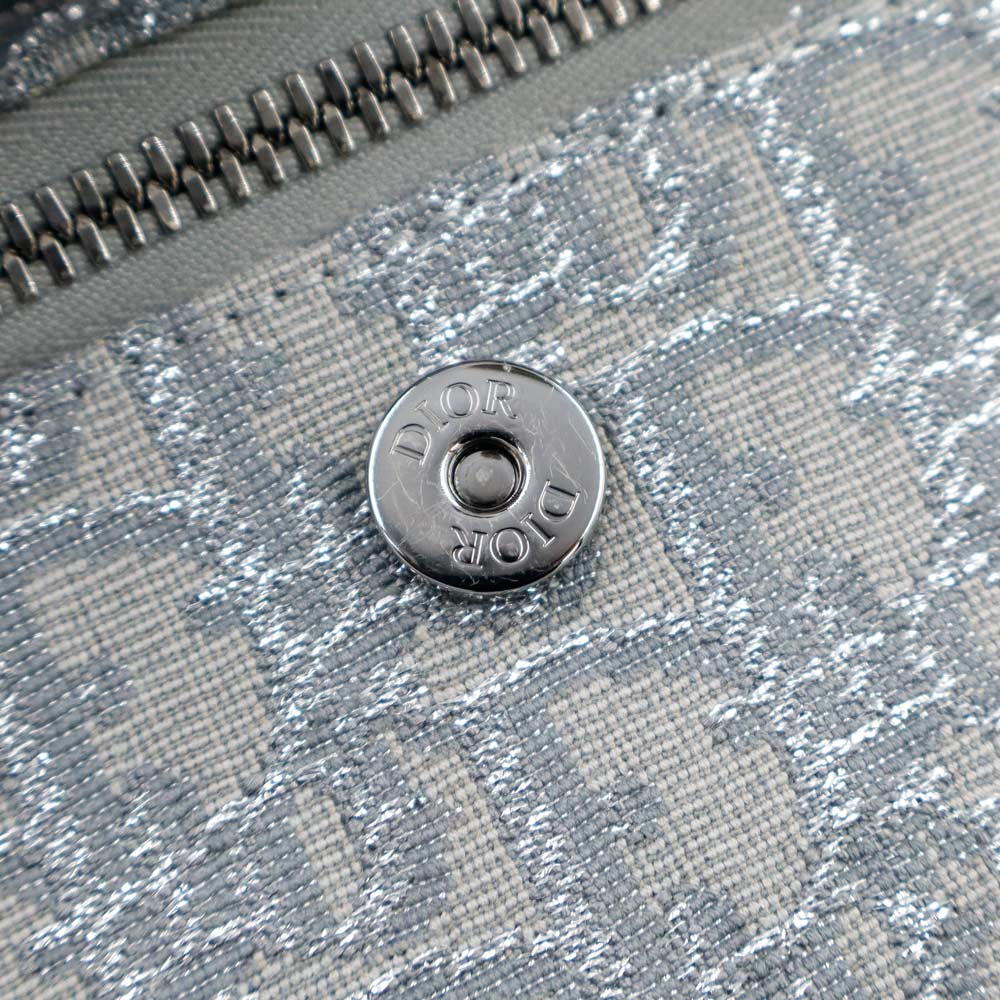 ルテニウムカラーのメタリックヤーンを含む、グレーの「ディオール オブリーク」ジャカードを使用したランゴ26。ショルダーストラップは取り外しができるので、ショルダーバッグやハンドバッグとしてもお使いいただます。 |