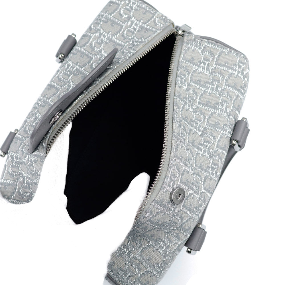 【未使用 展示品】Christian Dior クリスチャンディオール 1ADDU114DOS Lingot26 ディオール オブリーク ジャカード レザー グレー 2way ショルダー ハンドバッグ 斜め掛け シルバー金具