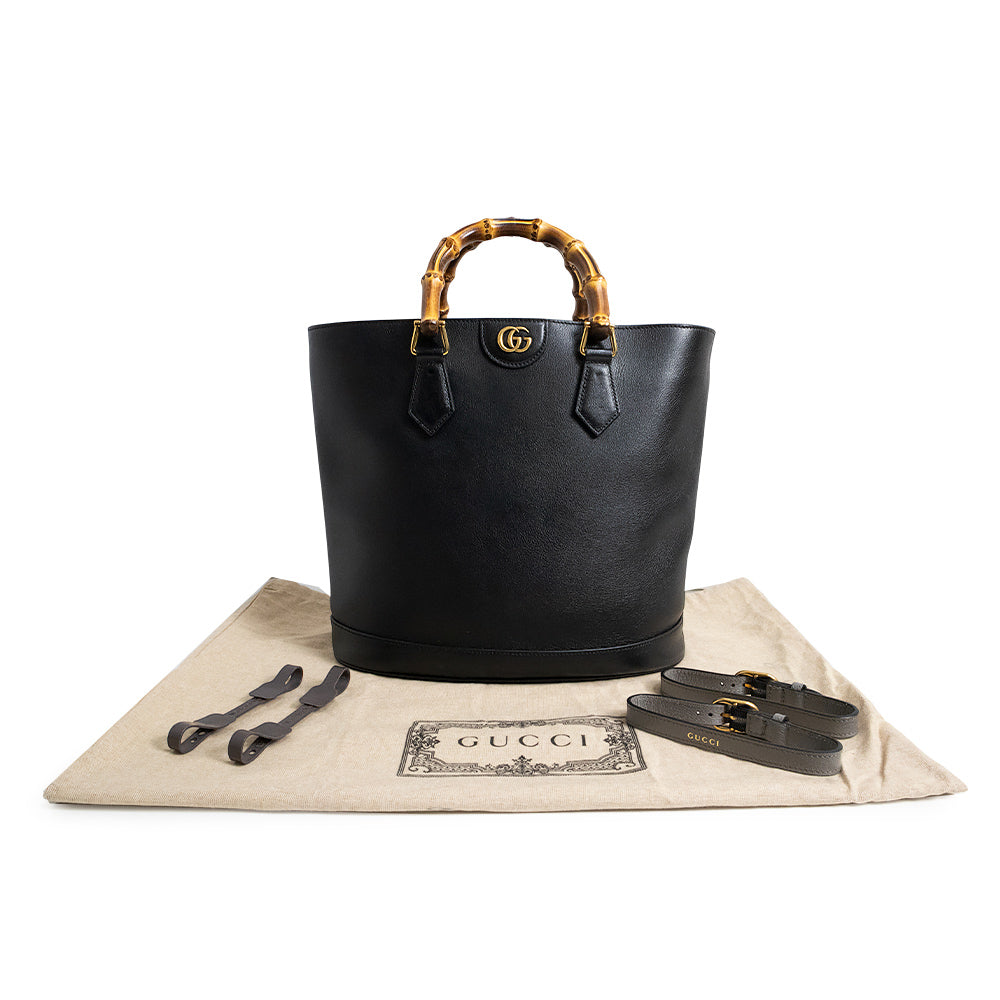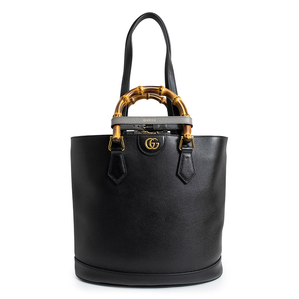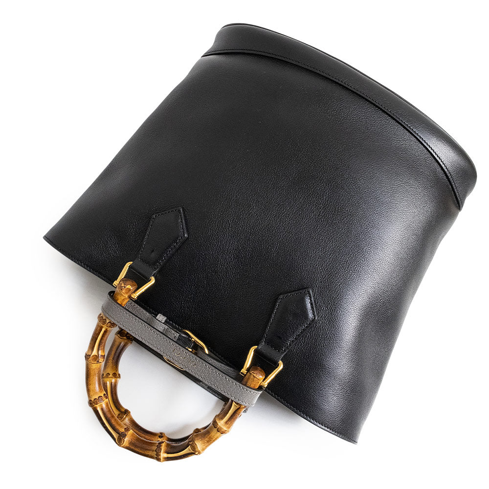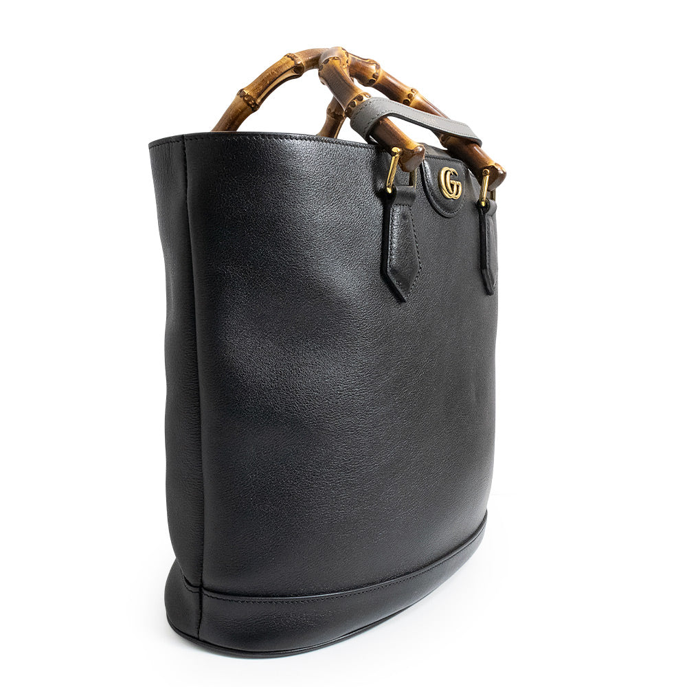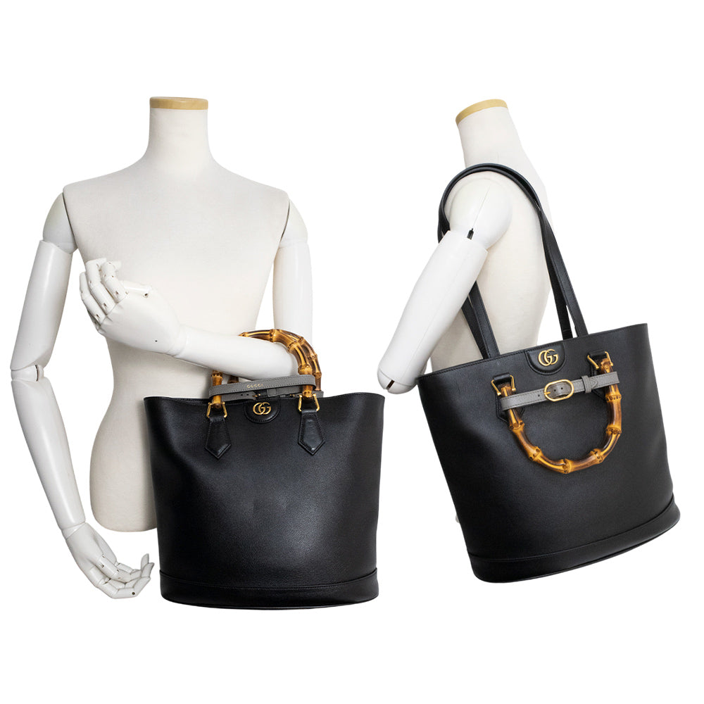 【未使用 展示品】GUCCI グッチ 750394 ダイアナ カーフスキン バンブー ブラック 2WAY ショルダー トート ハンドバッグ レザー アンティークゴールド金具