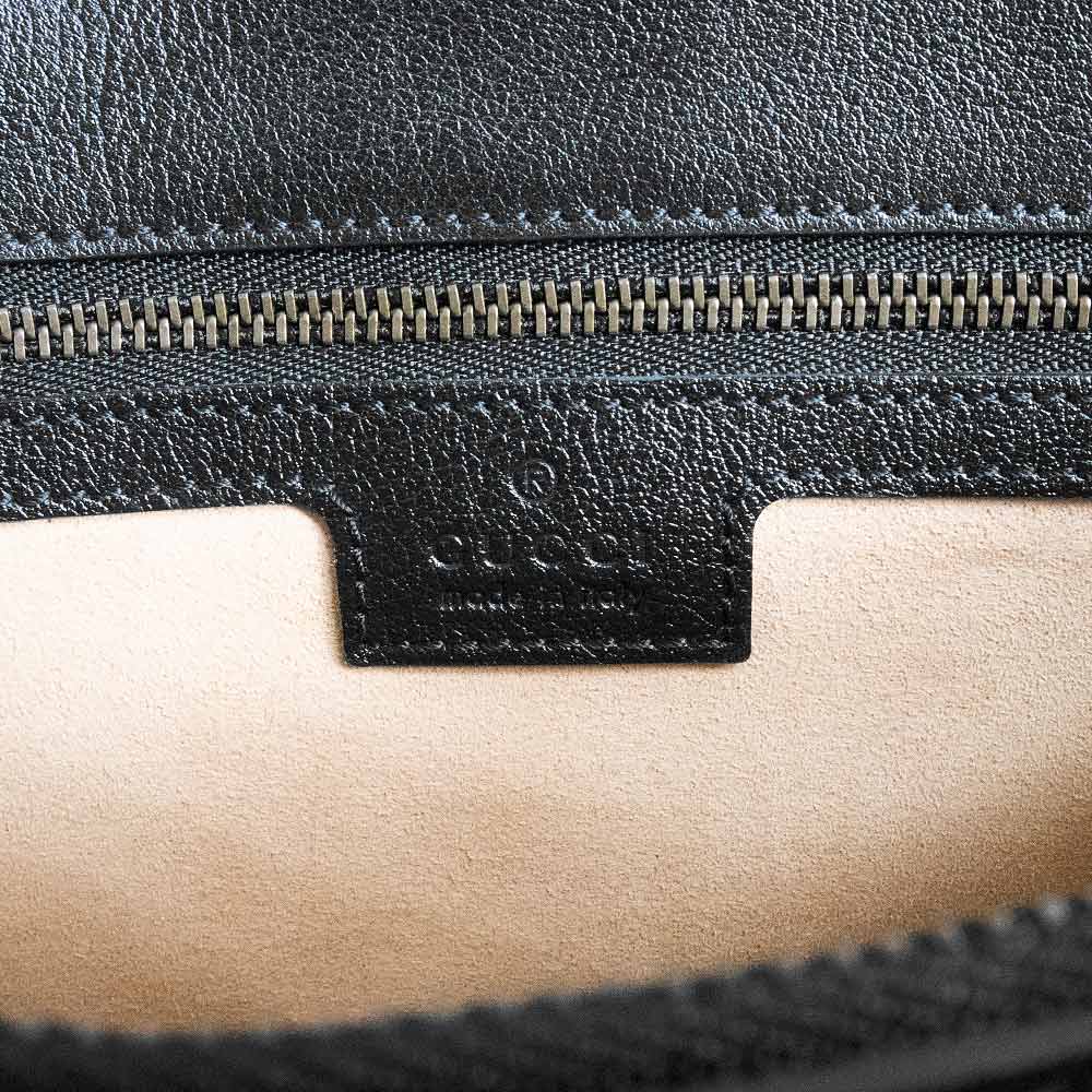 グッチの「ダイアナ」。バンブーハンドルとダブルG ハードウェアがデザインのポイントです。カーフレザーで仕立てられており、グレーカラーのベルトハンドルシェイパーが印象的です。 |