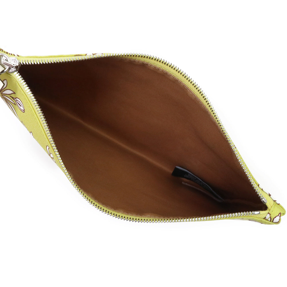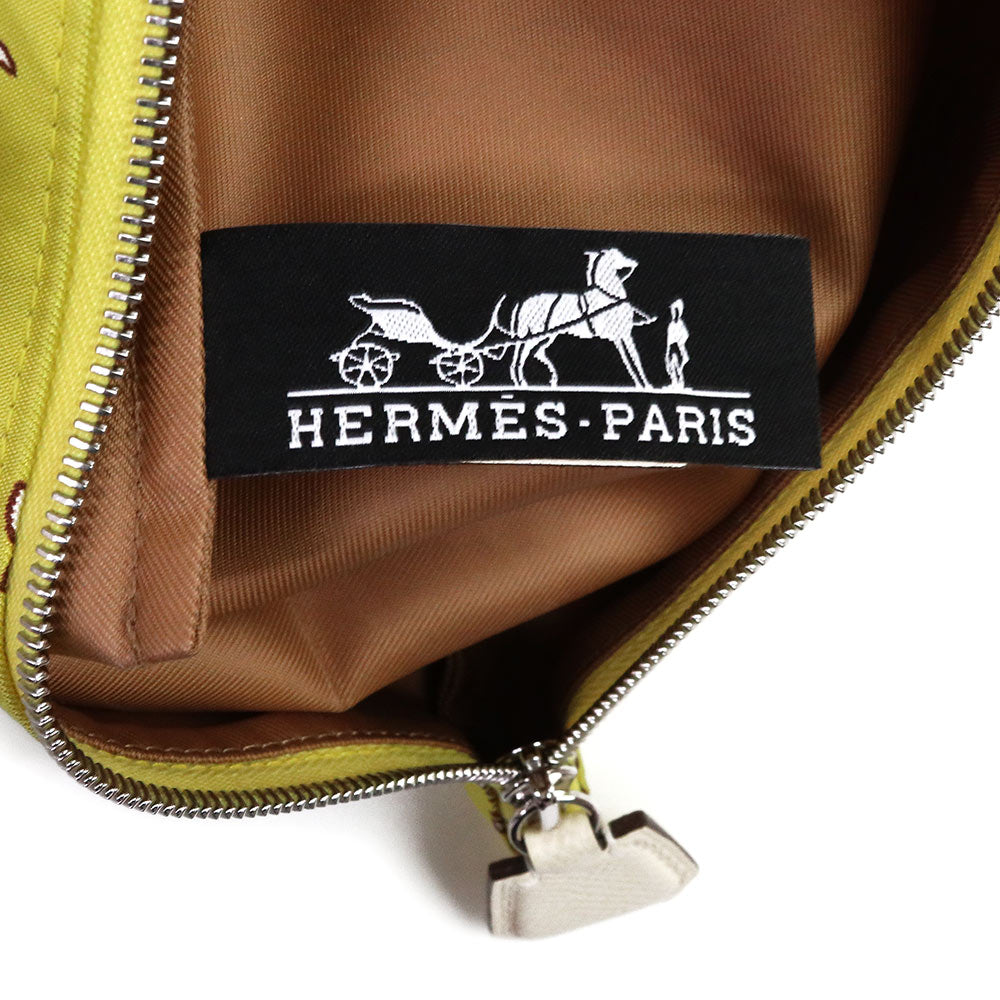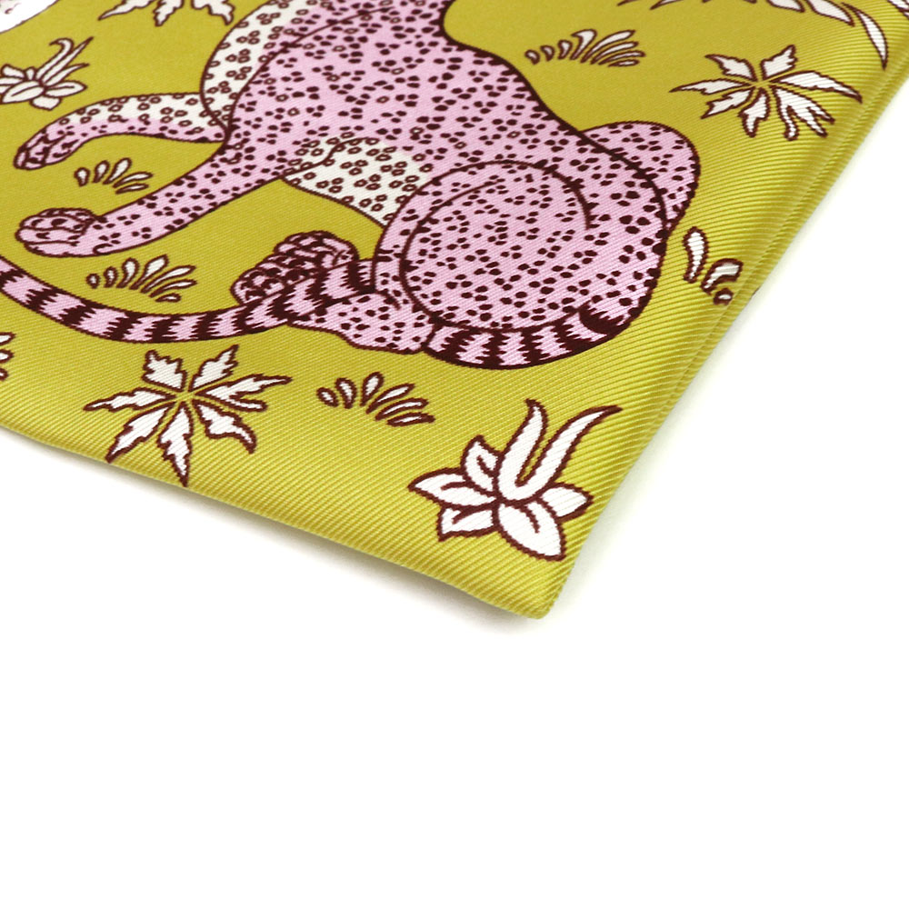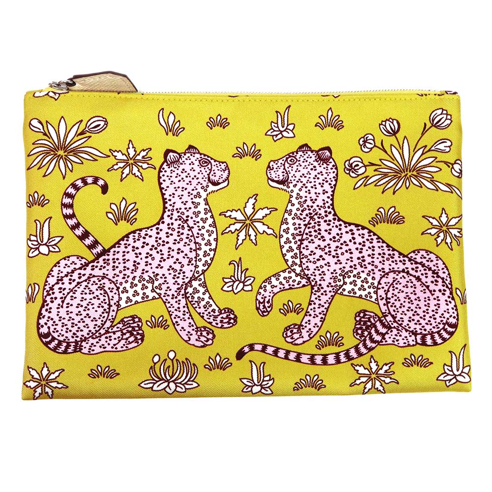 【未使用保管品】HERMES エルメス シルキーポケット ポーチ レオパード LES LEOPARDS コスメ 化粧 フラット ポーチ シルク100% ヴォーエプソン ジョーヌシトロン モーヴペール ナタ イエロー レザー シルバー金具 U刻印 箱付
