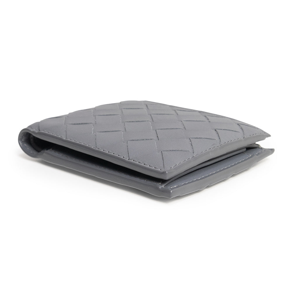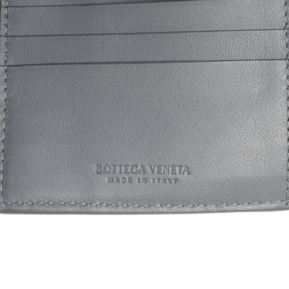 【未使用 展示品】BOTTEGA VENETA ボッテガヴェネタ 749412 イントレチャート コインパース付き二つ折りウォレット カーフスキン グレー 二つ折り財布 レザー シルバー金具 箱付