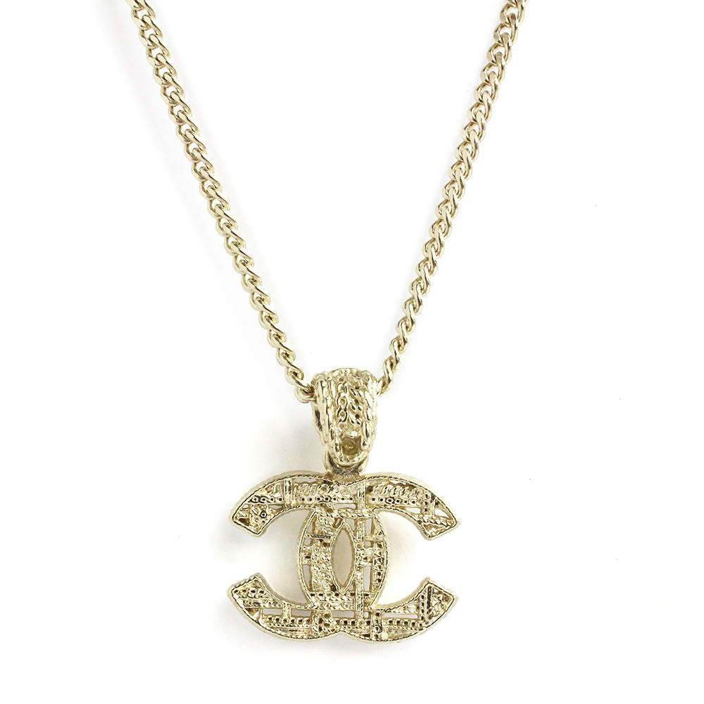 【新品同様品】CHANEL シャネル A64603 ココマーク チェーンミー ツイード シャンパンゴールド ペンダント ネックレス