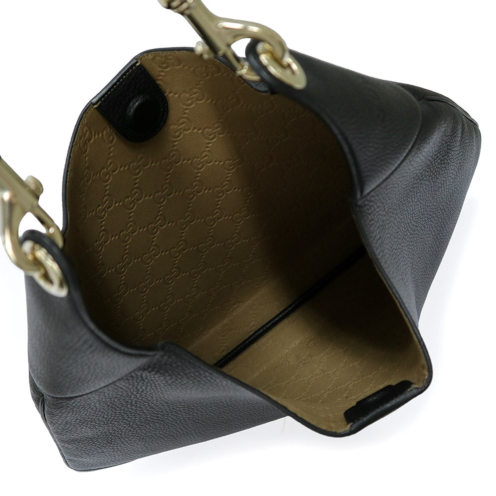 【美品】GUCCI グッチ 820169 ミディアムレザー ショルダーバッグ レザー ブラック 2way 斜め掛け ライトゴールド金具