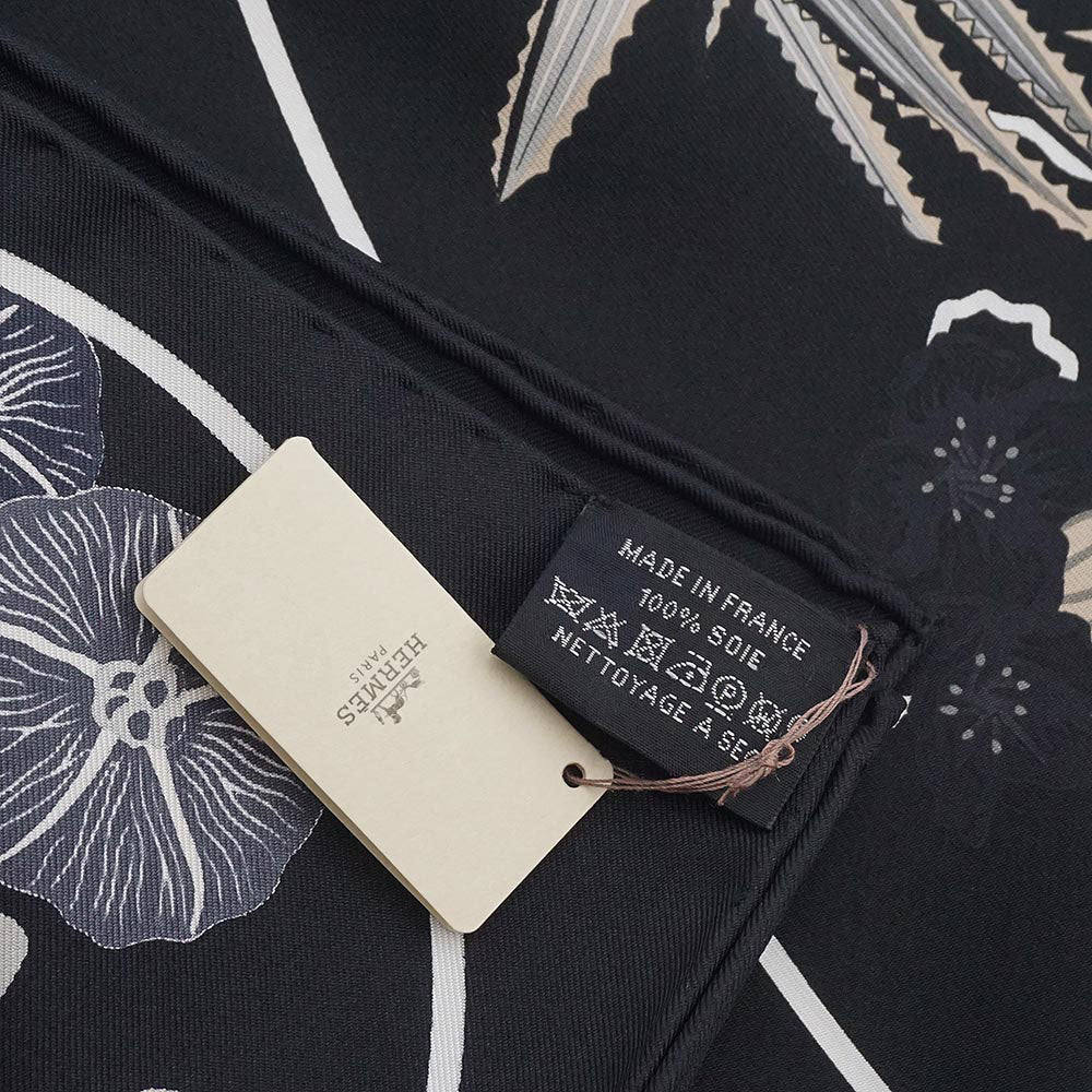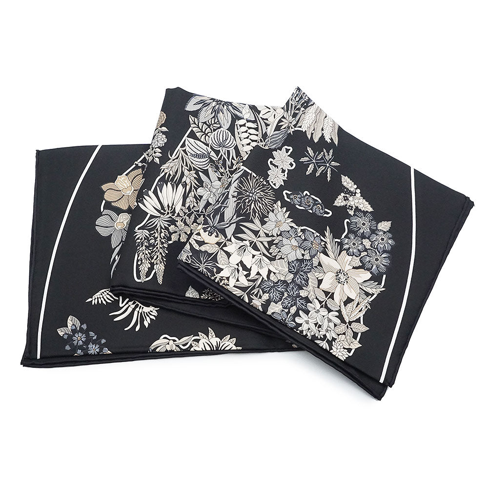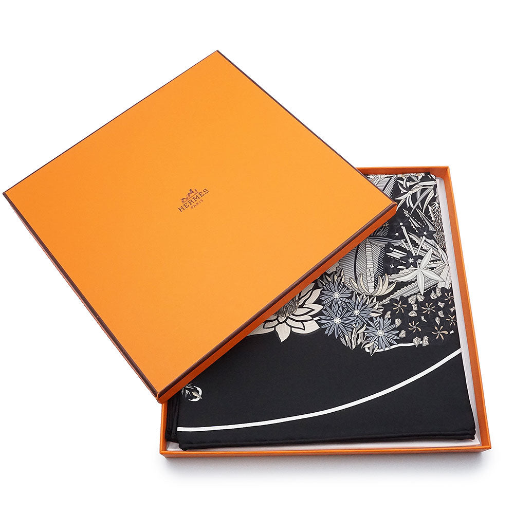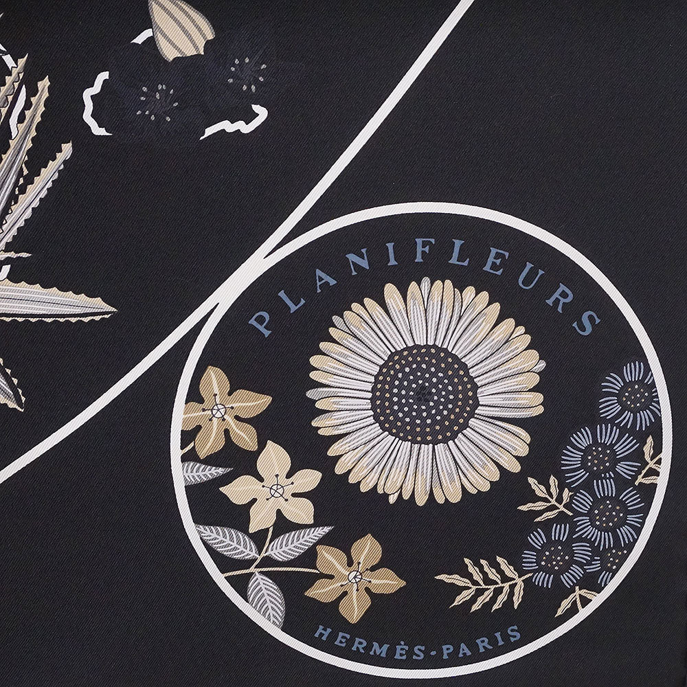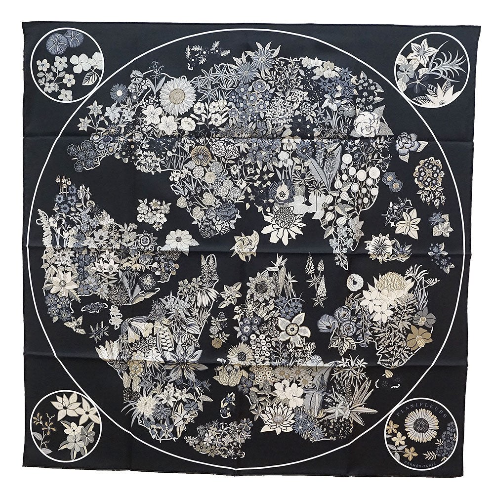 【新品・未使用品】HERMES エルメス カレ 90 Planifleurs プラニフルール シルク100% ノワール グリ パーシュマン ブラック スカーフ 箱付