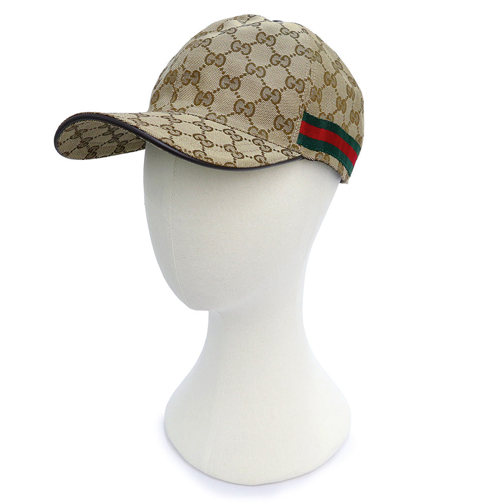 【未使用保管品】GUCCI グッチ 200035 ベースボール キャップ ハット 帽子 XLサイズ 60CM GGキャンバス レザー ベージュ ブラウン グリーン レッド キャップ ゴールド金具