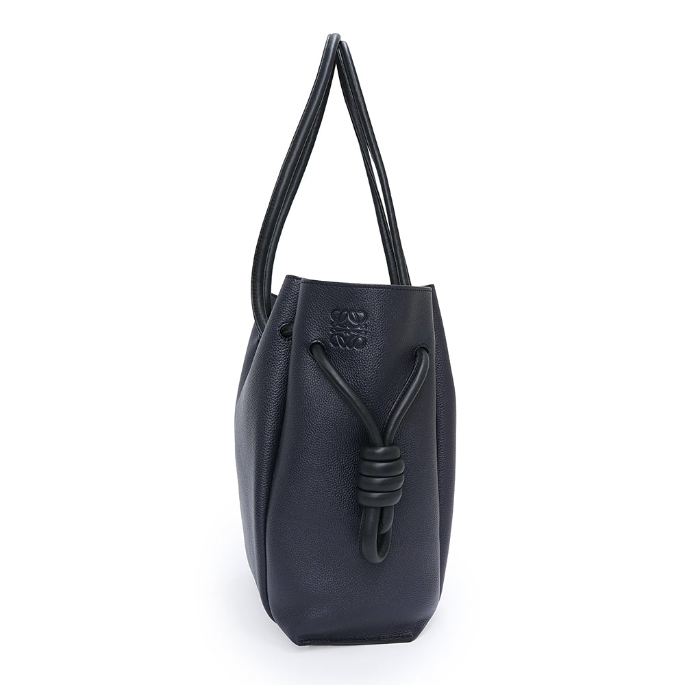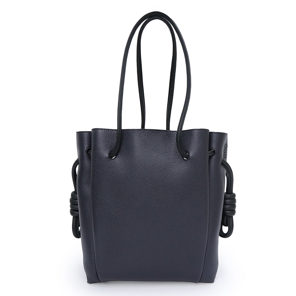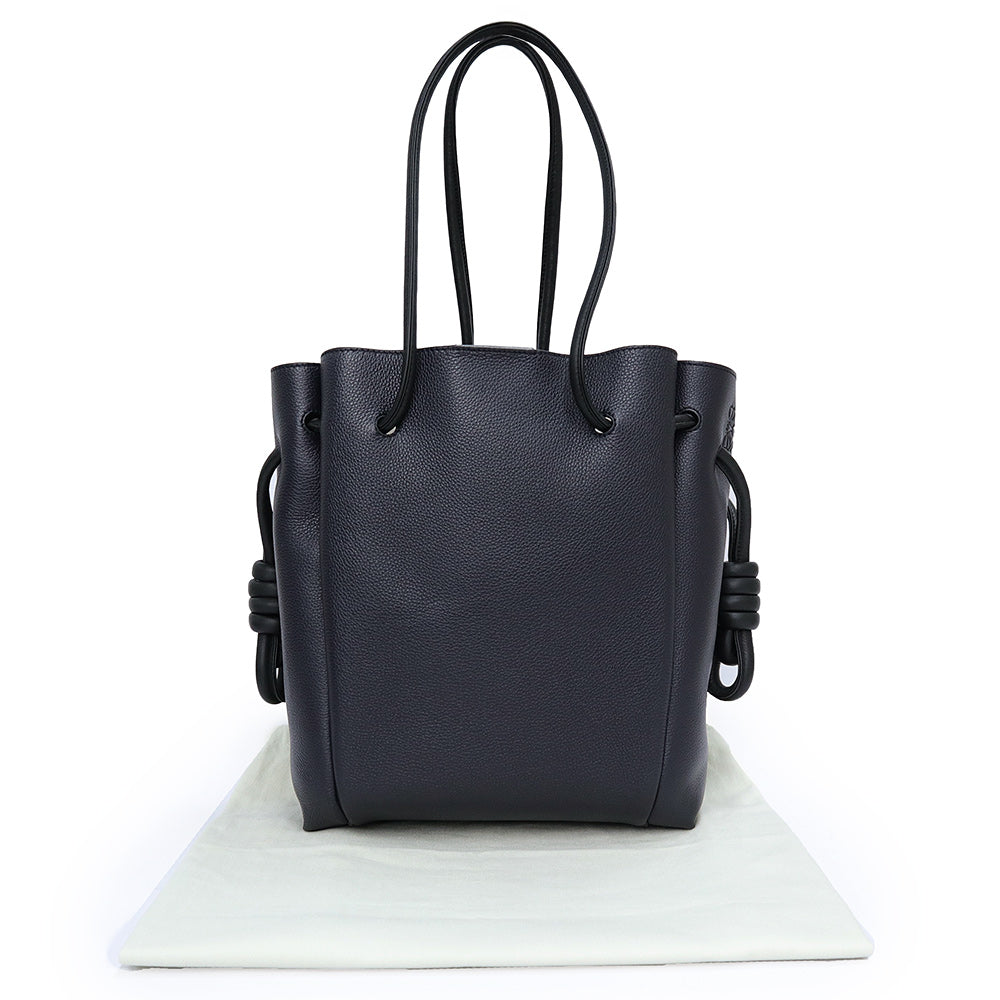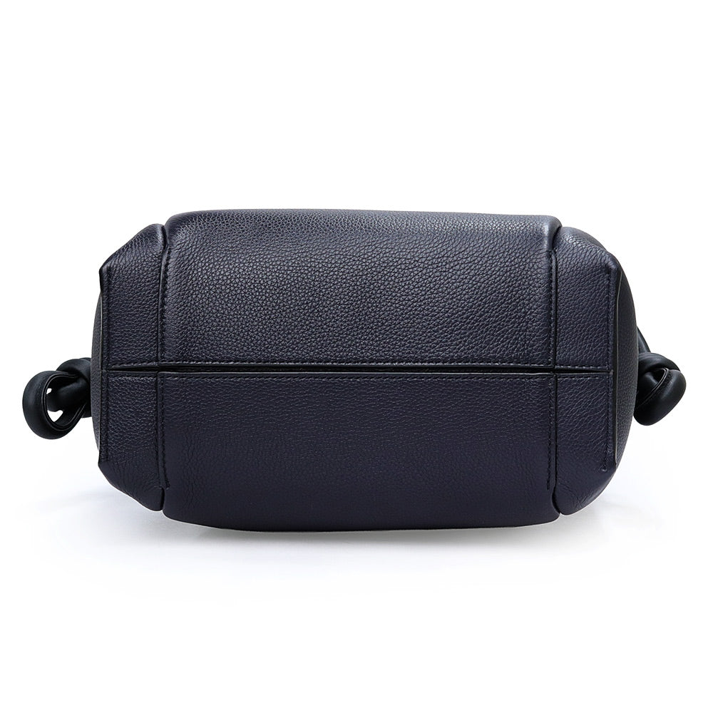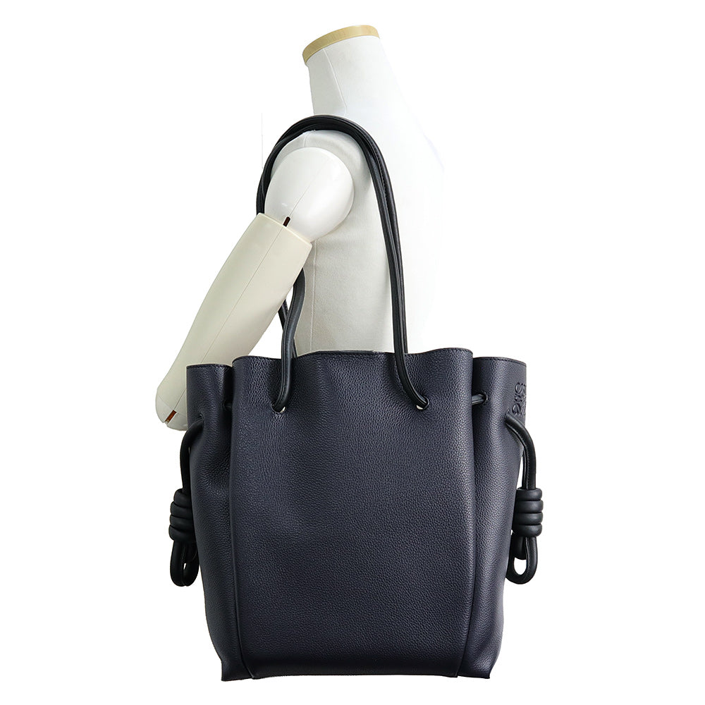 【未使用 展示品】LOEWE ロエベ 321 12 T31 フラメンコ ノット スモール カーフスキン ネイビー ブラック トートバッグ 巾着 ドローストリング レザー シルバー金具