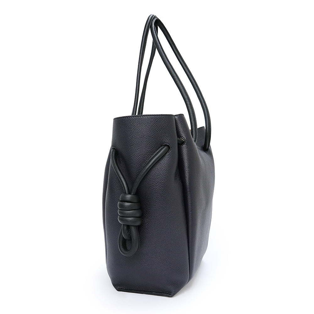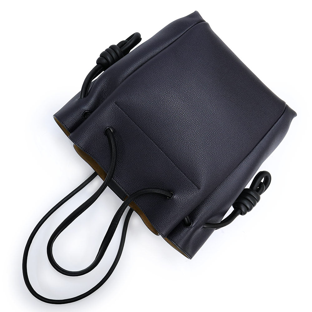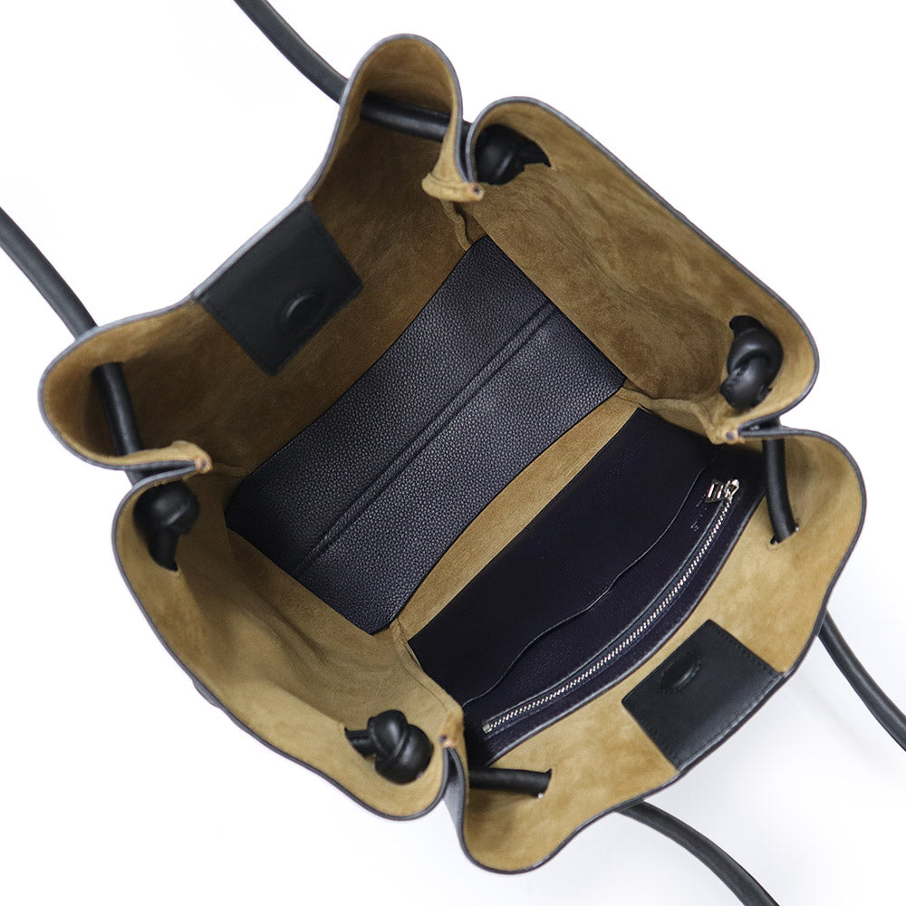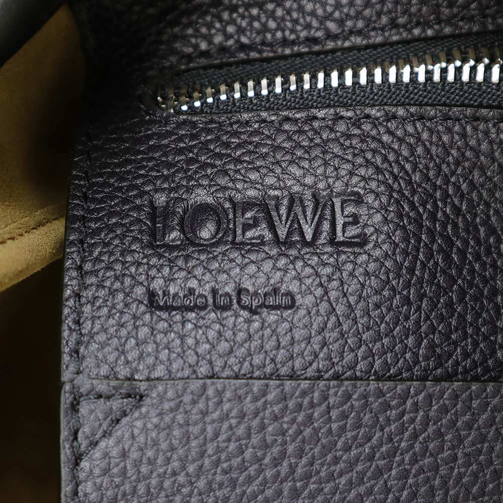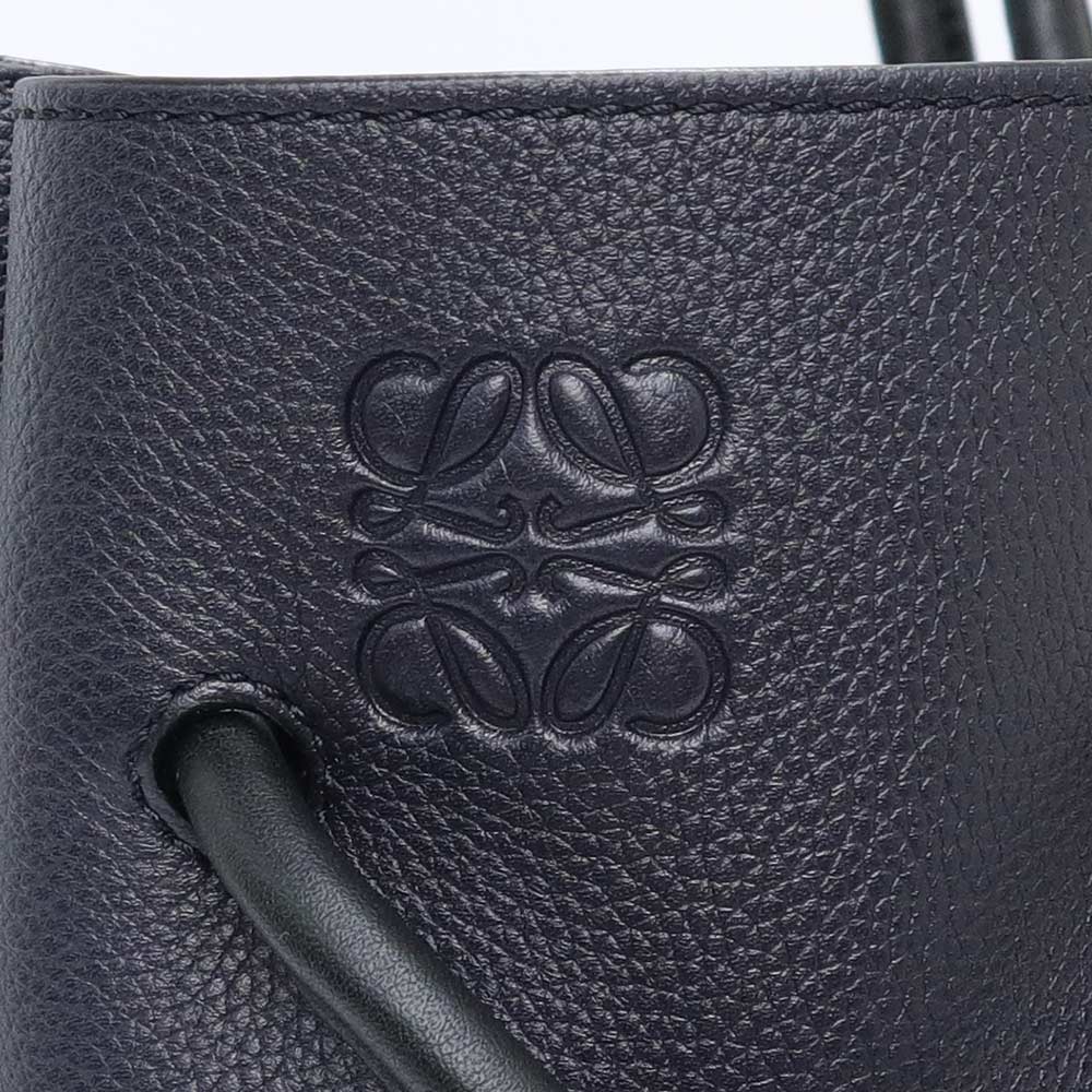 【未使用 展示品】LOEWE ロエベ 321 12 T31 フラメンコ ノット スモール カーフスキン ネイビー ブラック トートバッグ 巾着 ドローストリング レザー シルバー金具
